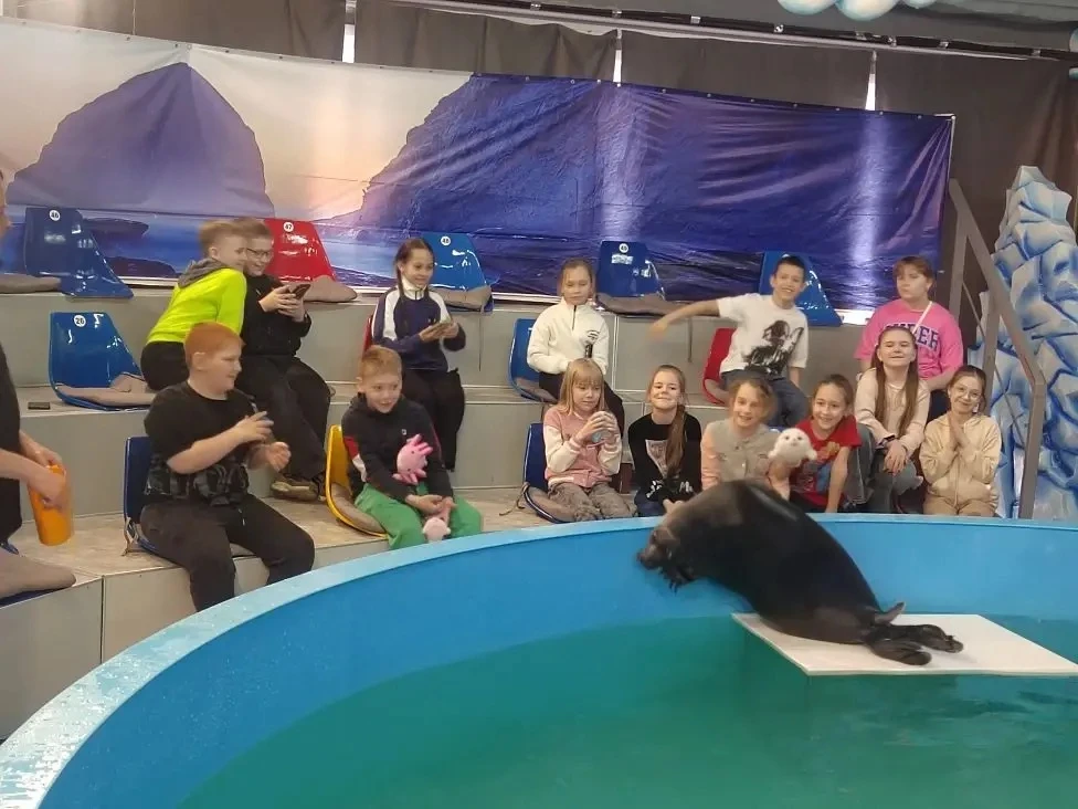 Завершили путешествие в нерпинарии, где милые Адель, Зевс и Жорж показали свои таланты.