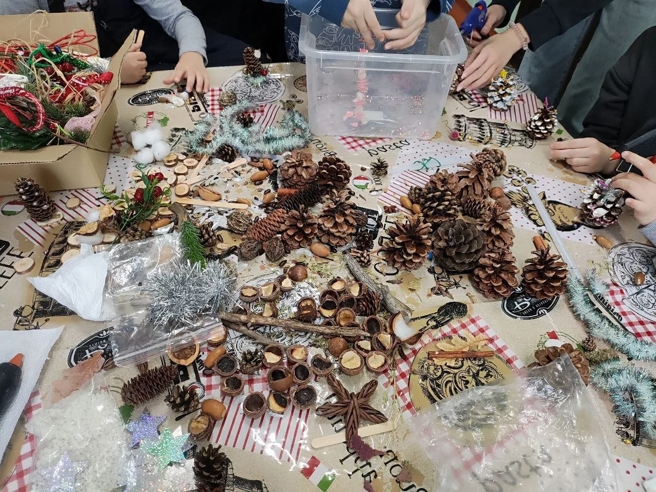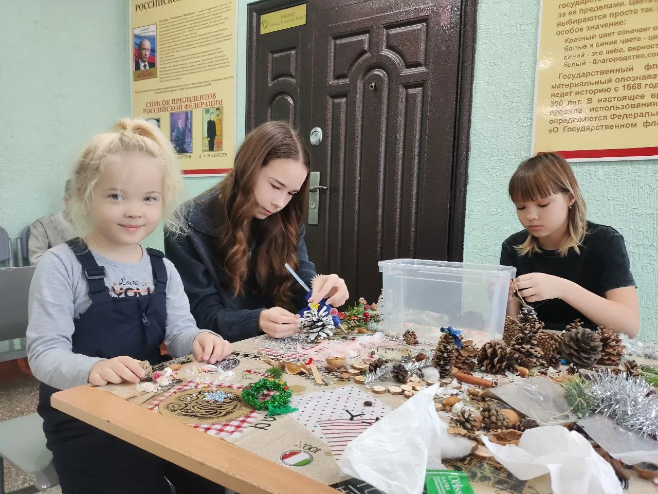 Сегодня в нашей школе была настоящая творческая мастерская! Ребята создавали милые сувениры из шишек, бусин, колокольчиков и мишуры.