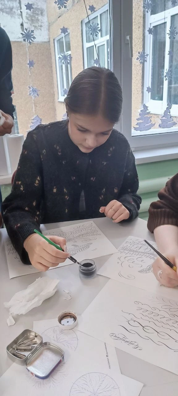 А Лукина Ольга Валерьевна познакомила желающих с основами каллиграфии тонким пером.