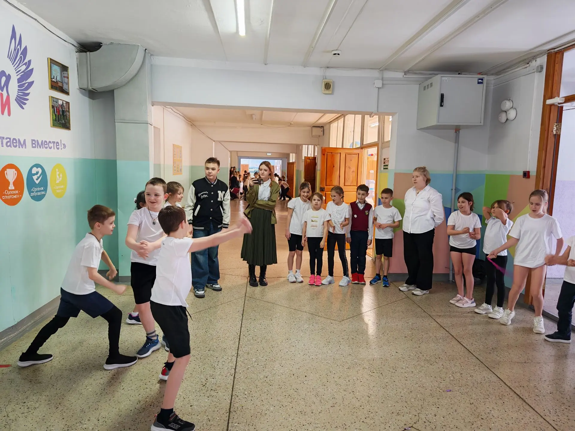 Любители активного отдыха с энтузиазмом вспоминали давно знакомые подвижные игры — «Ручеёк», «Резиночки», хороводные игры. Звонкий смех и радостные возгласы наполняли школьные коридоры. 😂🎯