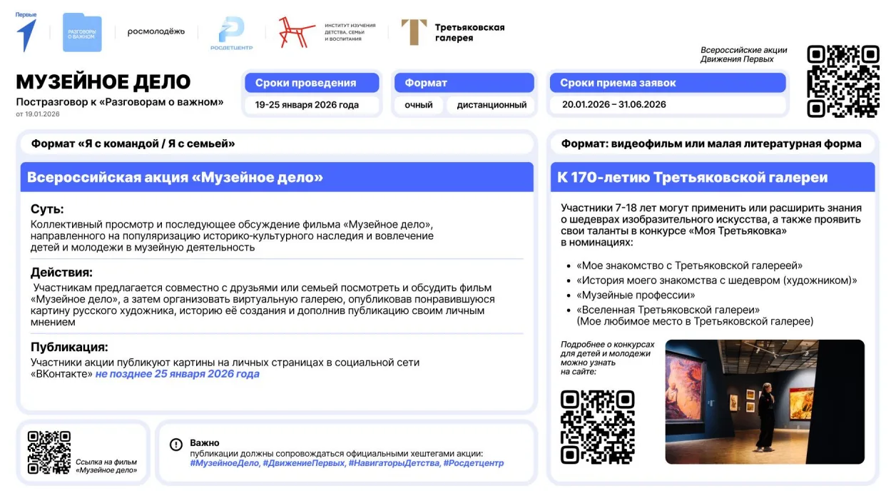 🗓️ Сегодня, 19 января, у нас — «Разговоры о важном»! Тема: «Музейное дело. 170 лет Третьяковской галерее» ✨🎨 Искусство ближе, чем кажется!