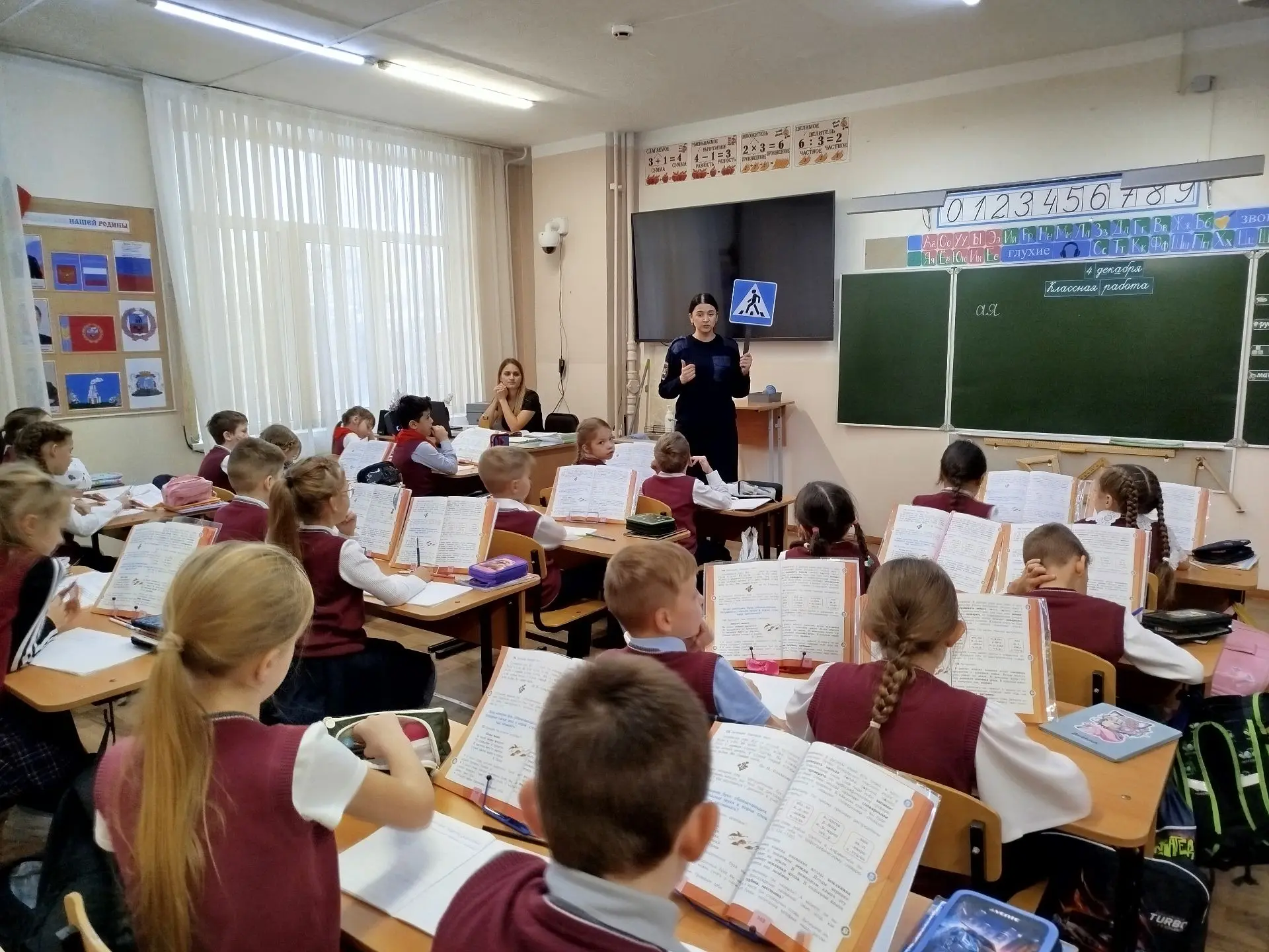Государственный инспектор БДД отдела ГАИ УМВД России по г. Барнаулу, старший лейтенант Мещерякова Я.И. провела серию бесед с учащимися на важную тему: «Опасности зимней дороги. Правила перехода через проезжую часть. Оттепель — велосипеды!».