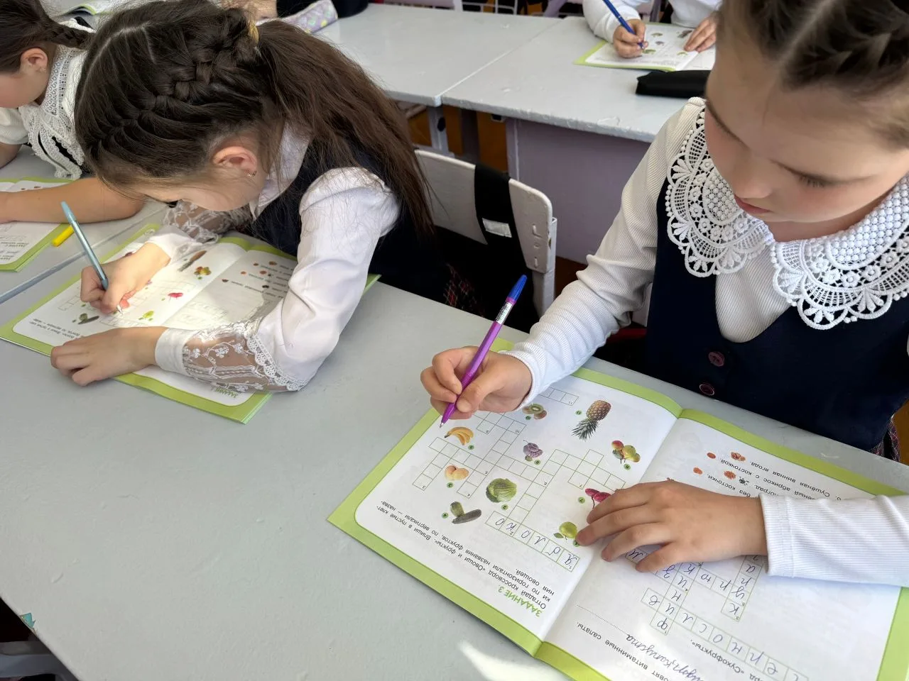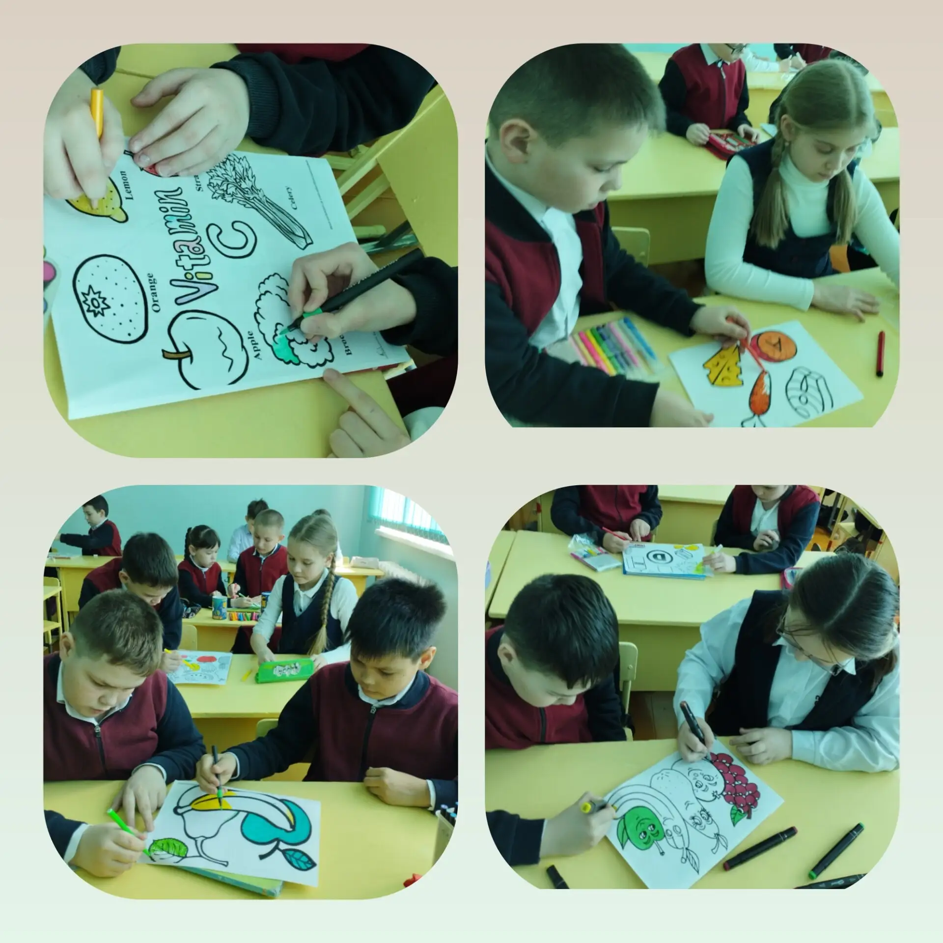 Была организована выставка рисунков, решали кроссворды, отгадывали загадки. И по русскому языку ребята получили задание, составить текст - повествование "Витаминный салат".🥗