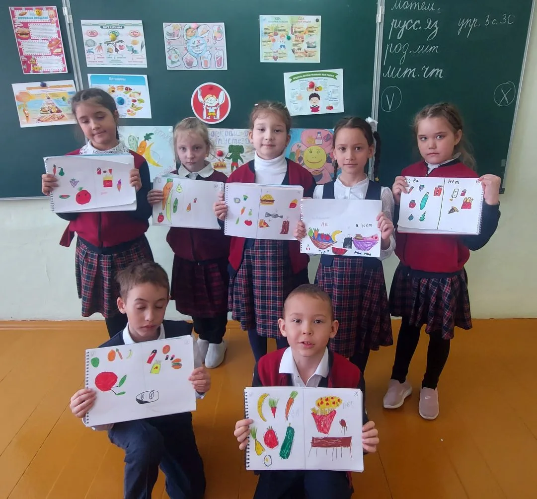 Спасибо нашим ученикам за творчество и родителям за поддержку! Вместе мы делаем шаги к здоровому будущему! 🍏🥦🥗