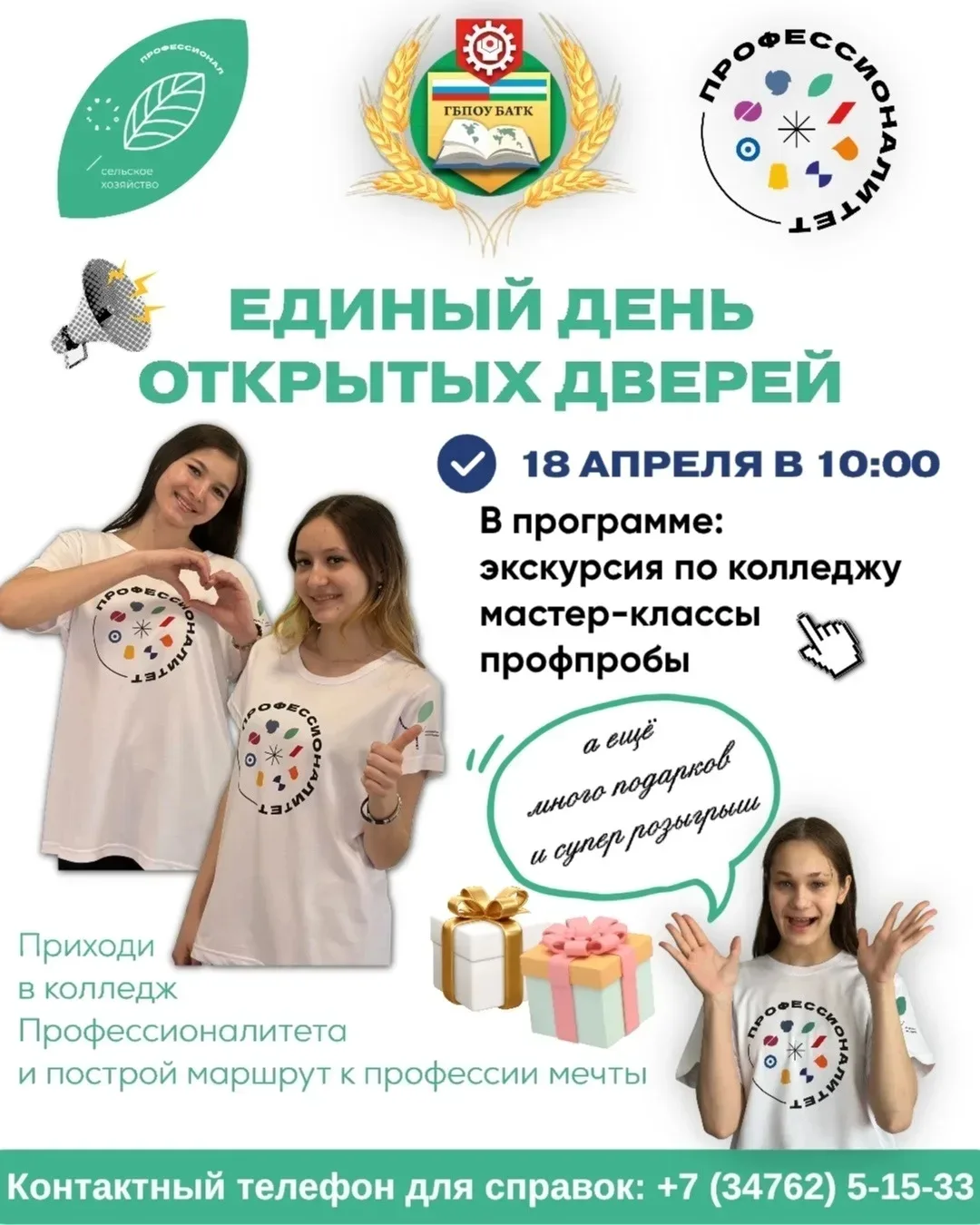 📢 Башкирский аграрно-технологический колледж приглашает будущих студентов и их родителей на День открытых дверей!