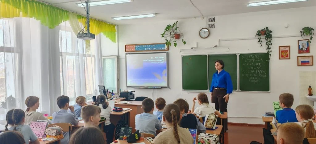 Чтобы знакомство с миром профессий было наглядным, гостья продемонстрировала школьникам видеофильм. Ролик был посвящён одной из интересных сфер труда и очень понравился юным зрителям.