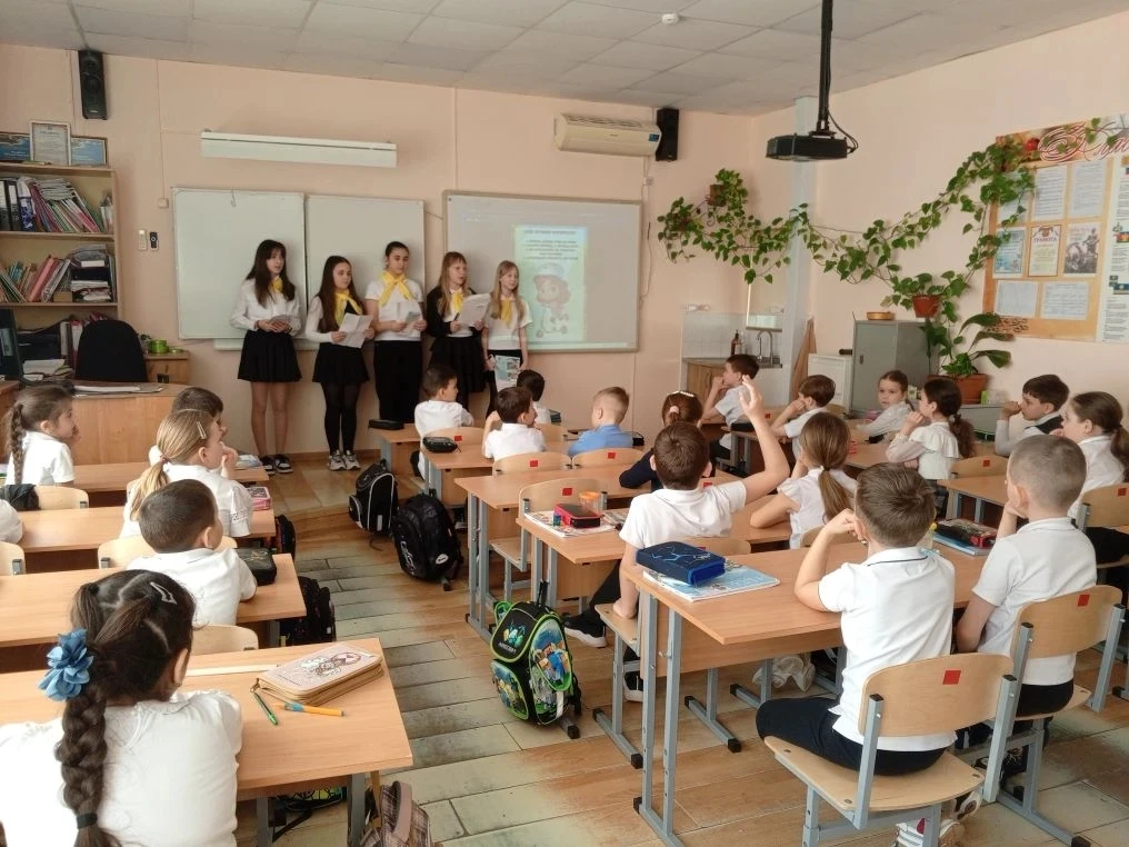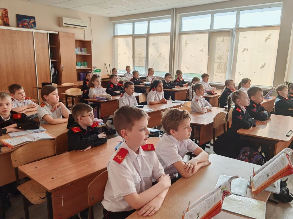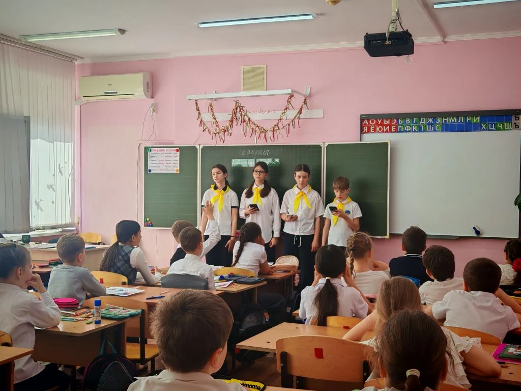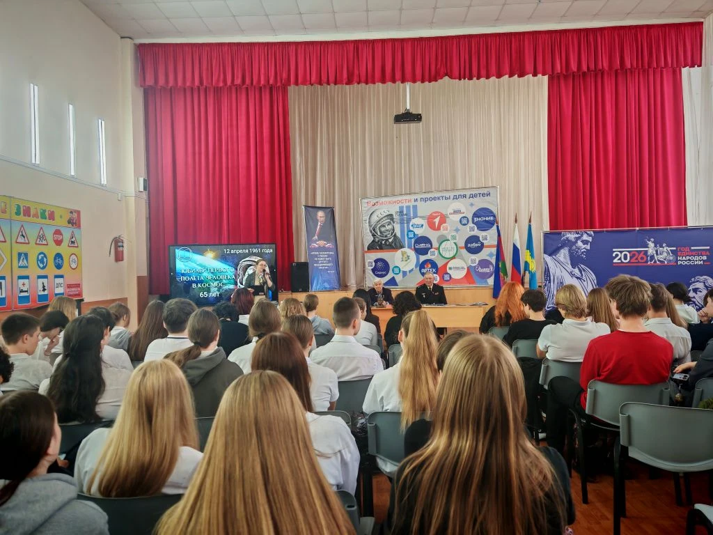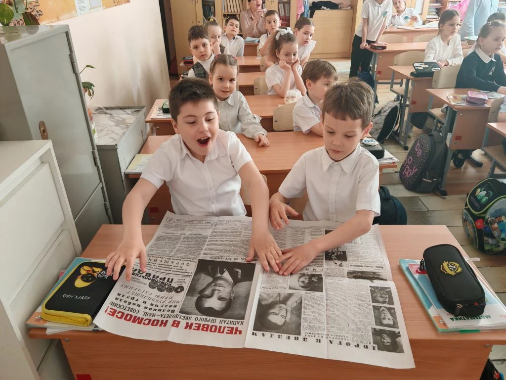 Ко Дню космонавтики ученик 8Г класса МБОУ СОШ №4 им.В.М.Евскина, активист движения «Первые» и большой знаток истории Алексей Святов провёл для учеников 1А класса настоящий урок мужества. Тема встречи — *«Первые в космосе»* — вызвала живой интерес у школьников.