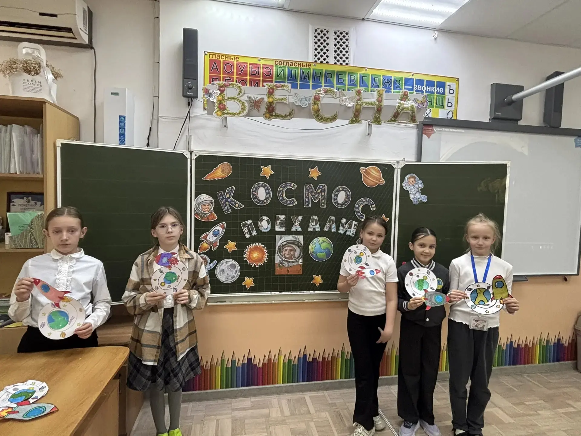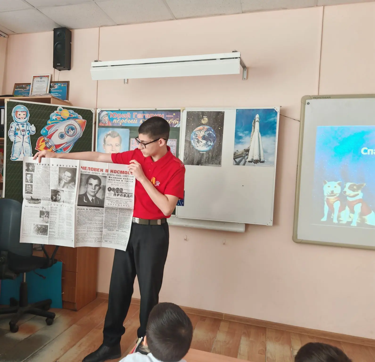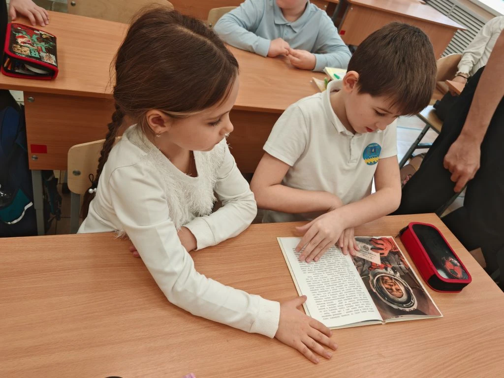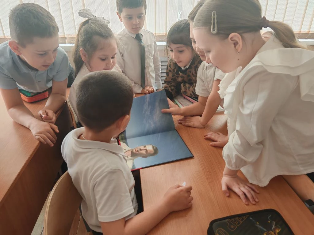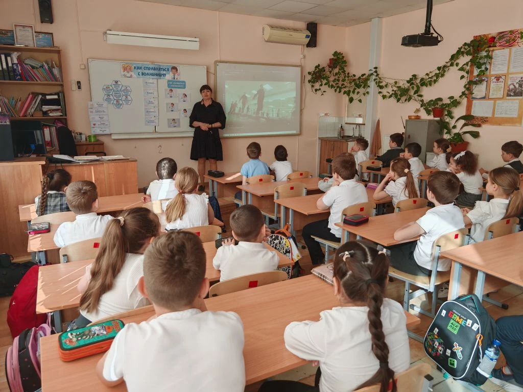 Ко Дню космонавтики ученик 8Г класса МБОУ СОШ №4 им.В.М.Евскина, активист движения «Первые» и большой знаток истории Алексей Святов провёл для учеников 1А класса настоящий урок мужества. Тема встречи — *«Первые в космосе»* — вызвала живой интерес у школьников.