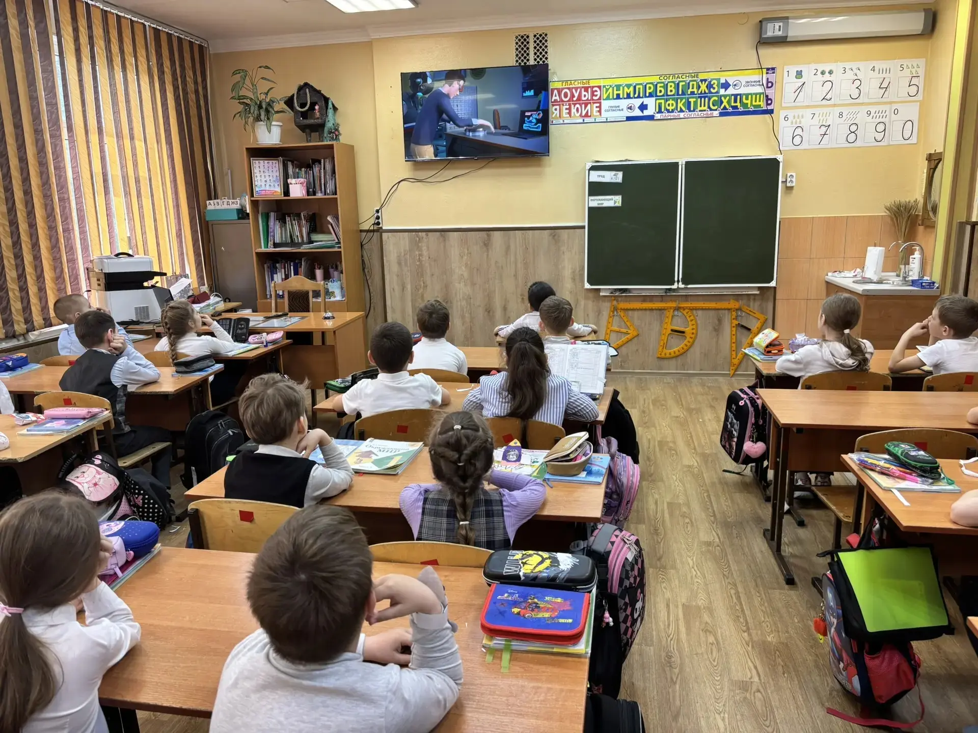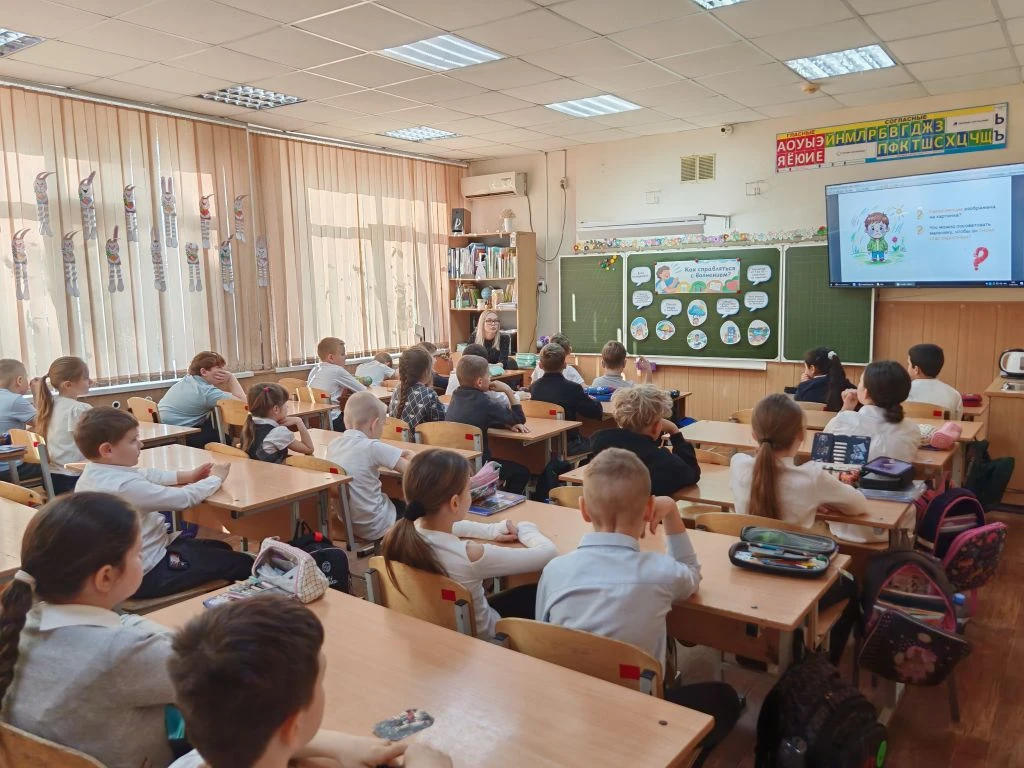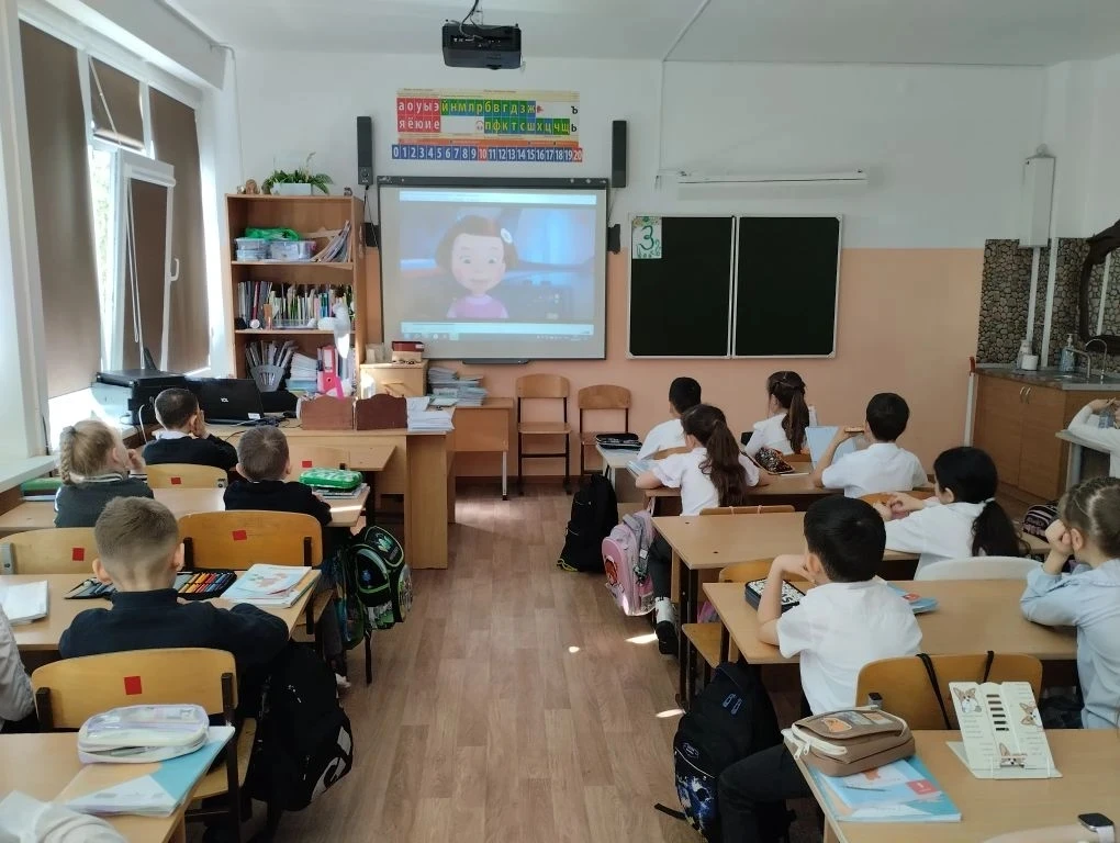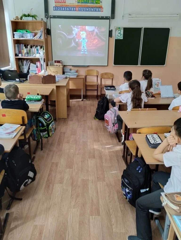 После просмотра состоялась оживлённая беседа 🗣️. Первоклассники активно отвечали на вопросы, делились своими впечатлениями и вместе с учителем сделали главные выводы: спорт, правильное питание и хорошие привычки — наши лучшие друзья! ⚽🥦✨
