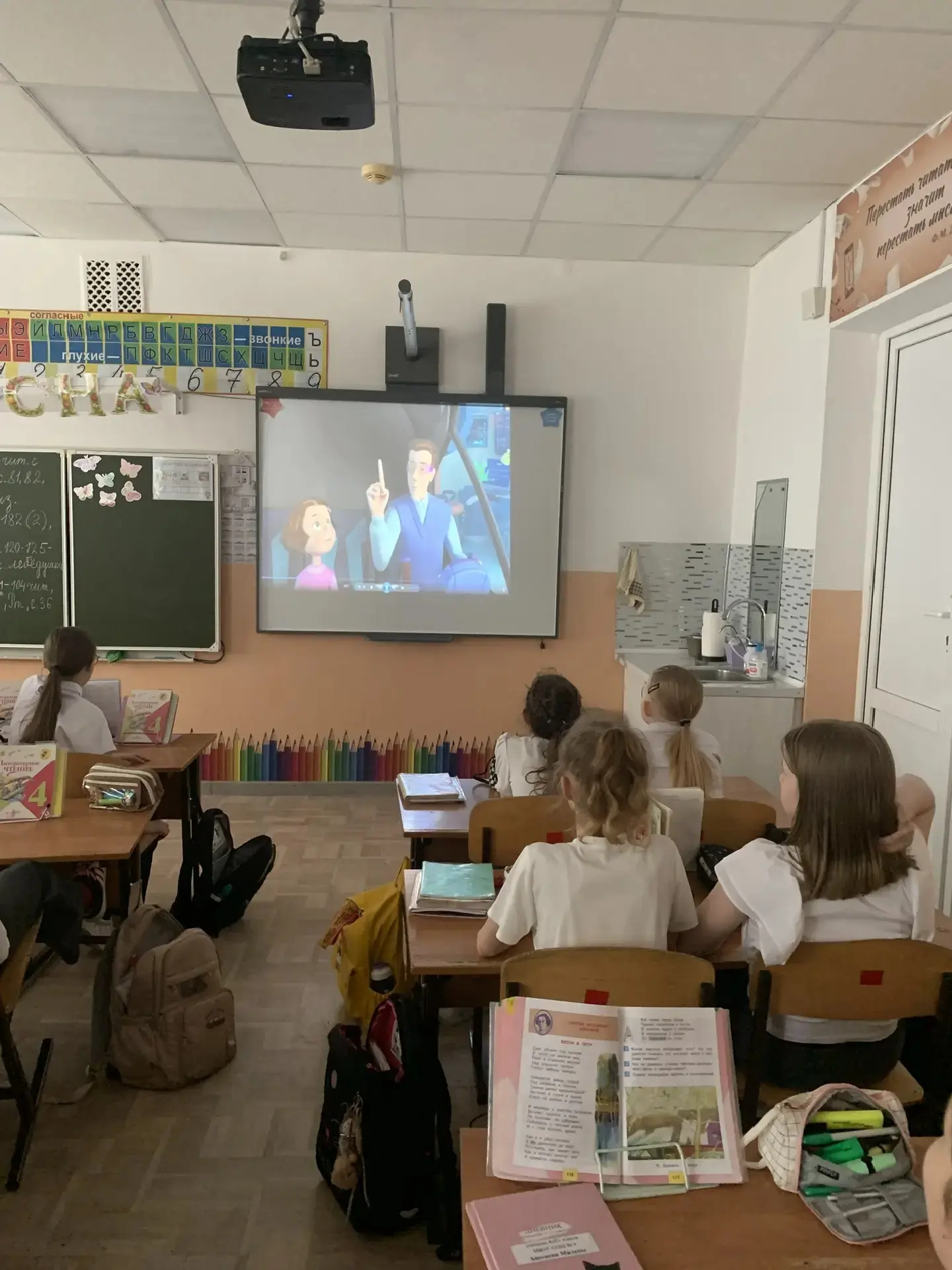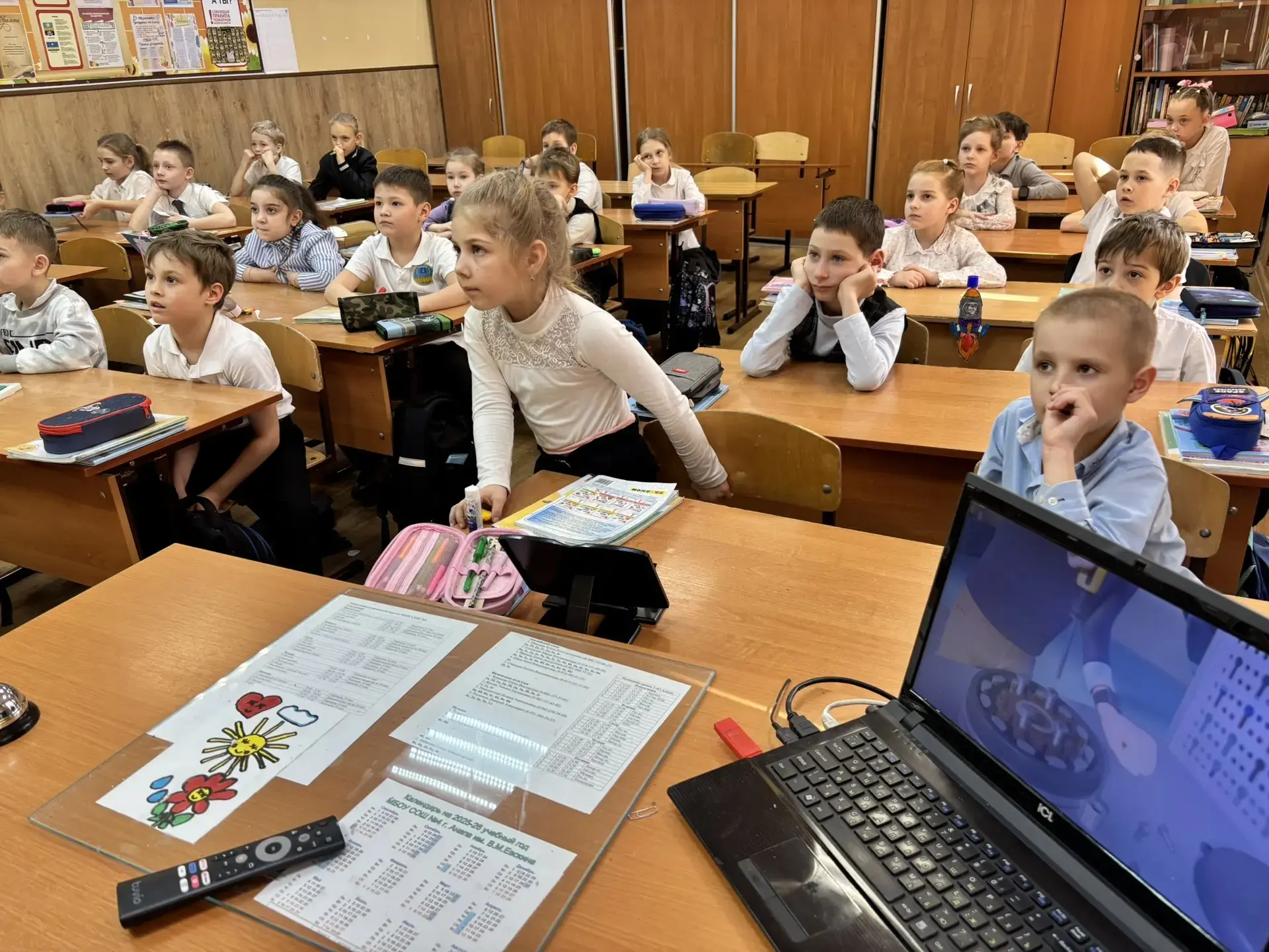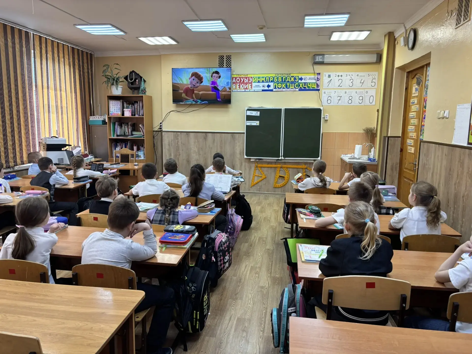 После просмотра состоялась оживлённая беседа 🗣️. Первоклассники активно отвечали на вопросы, делились своими впечатлениями и вместе с учителем сделали главные выводы: спорт, правильное питание и хорошие привычки — наши лучшие друзья! ⚽🥦✨