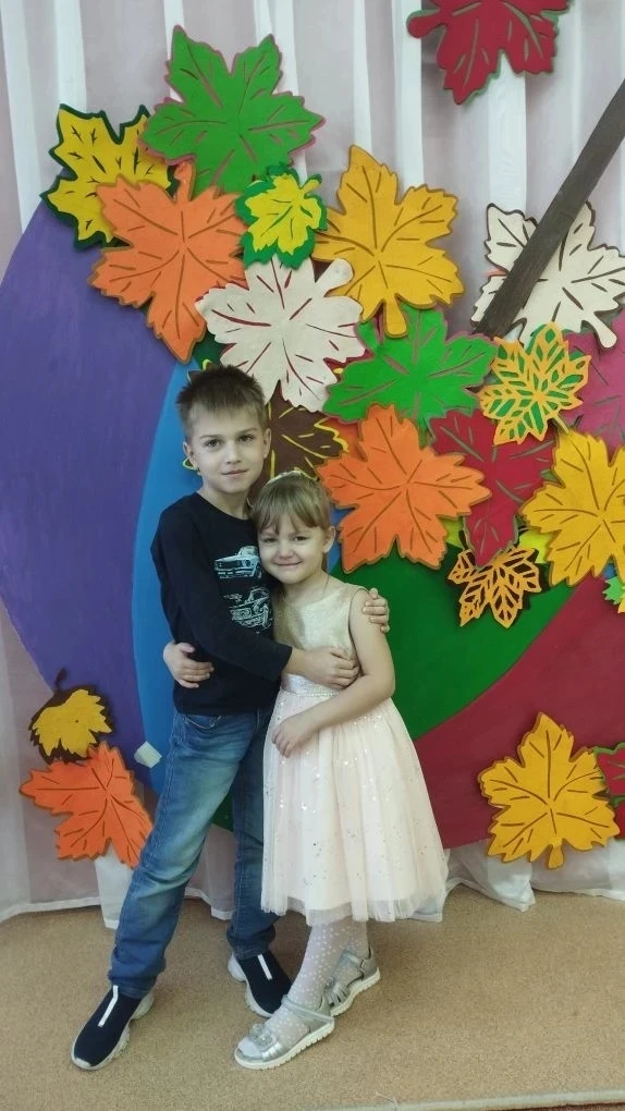 Ученик 3 "Б" класса Жук Денис с младшей сестрёнкой Алиной.