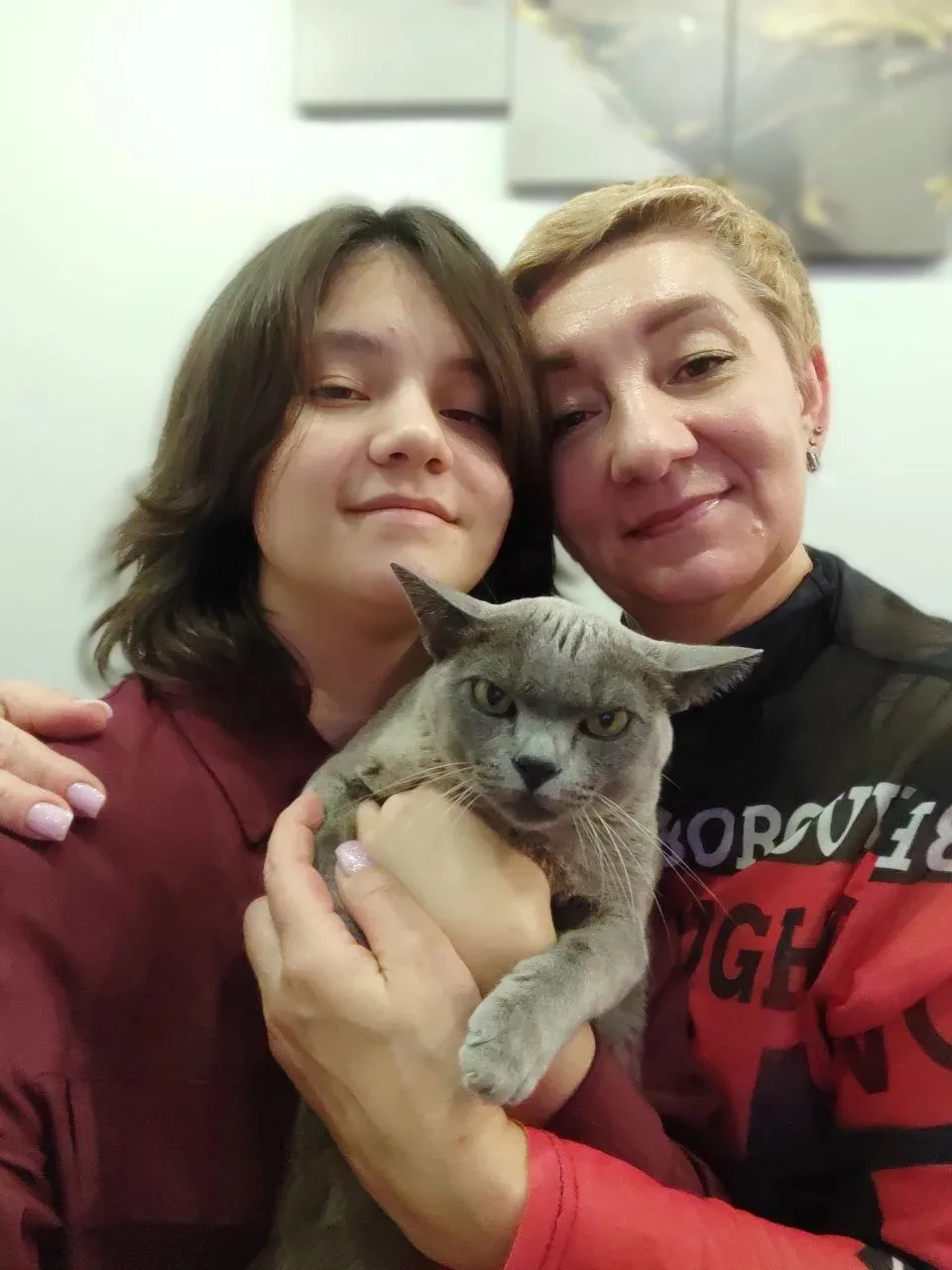 7а класс, Мартынюк Эвелина с мамой и недовольным котом Веней.