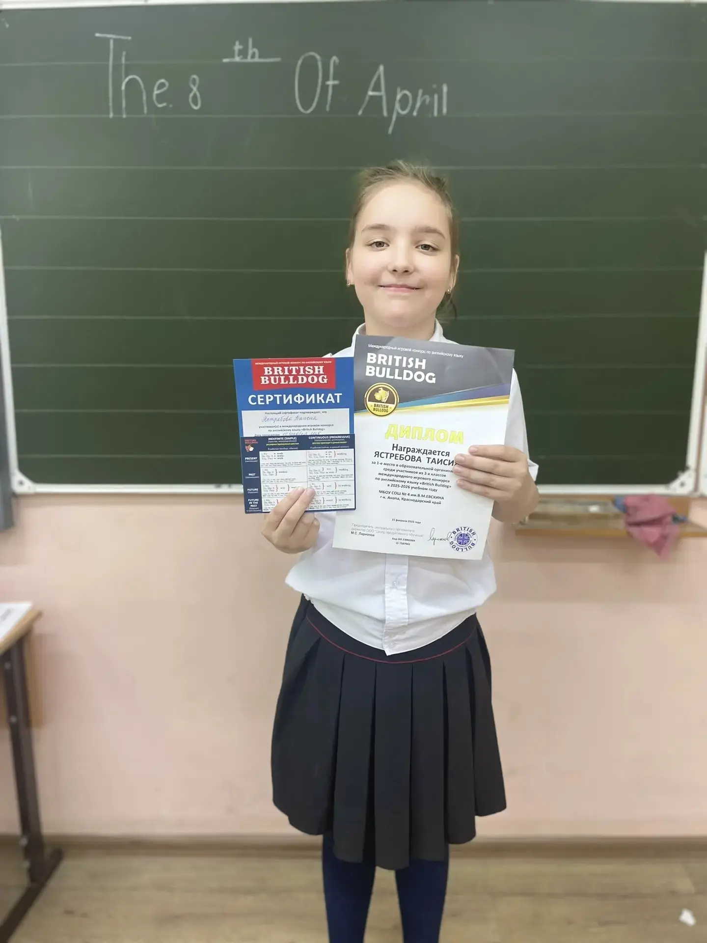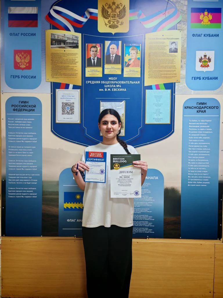 Обучающаяся 7 «Д» класса Окс Мария заняла 1 место в международной Олимпиаде по Английскому языку British Bulldogs.