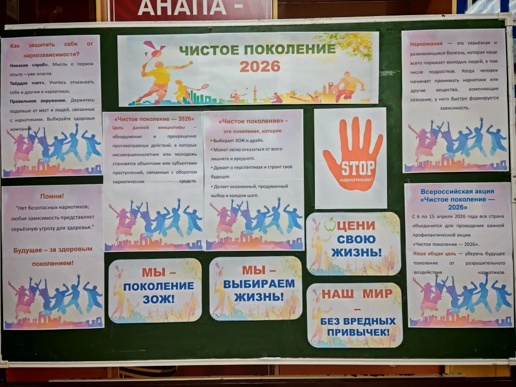 С 6 по 15 апреля 2026 года в России проходит Всероссийская акция «Чистое поколение — 2026», направленная на борьбу с распространением наркомании среди молодёжи.