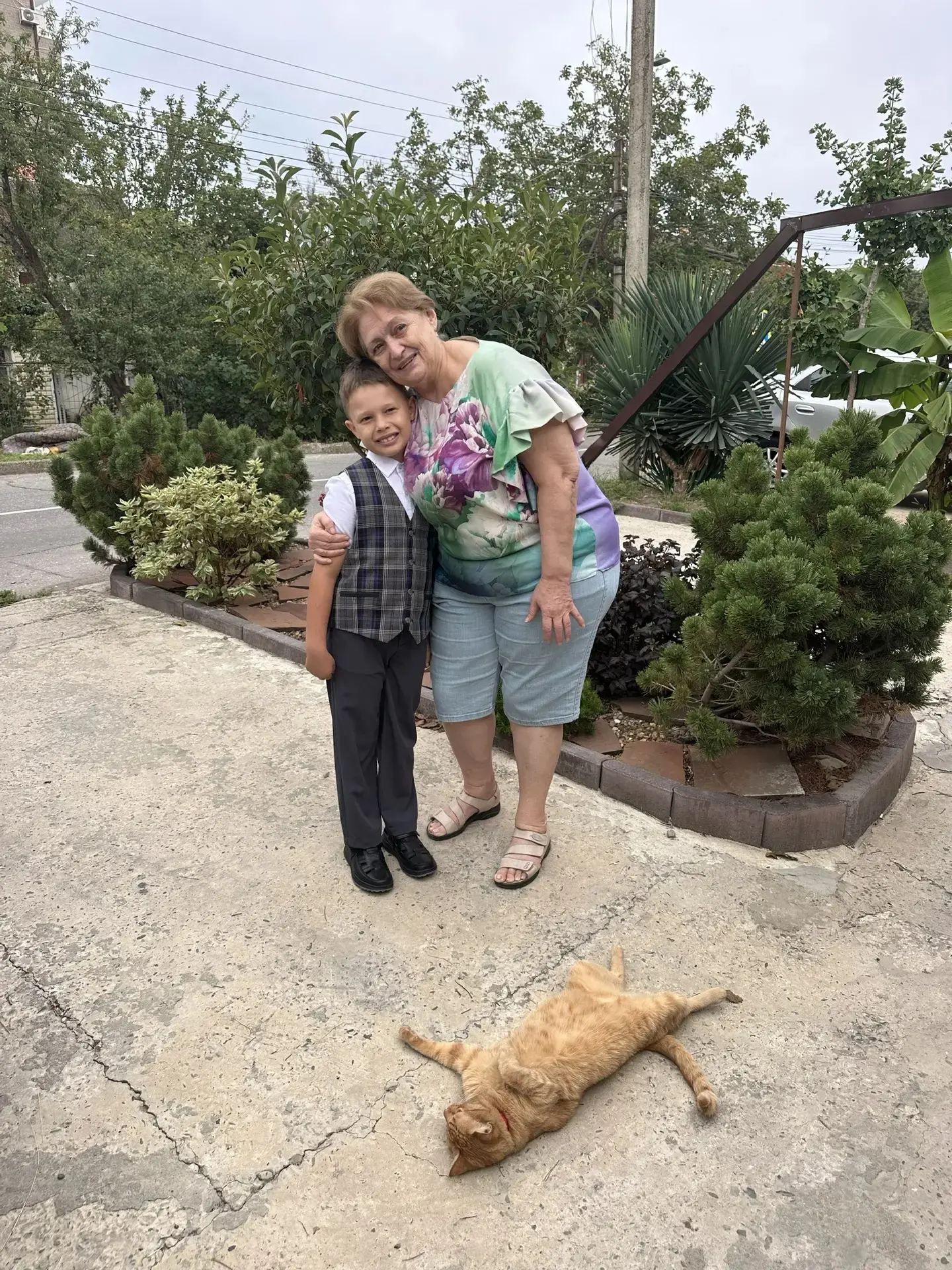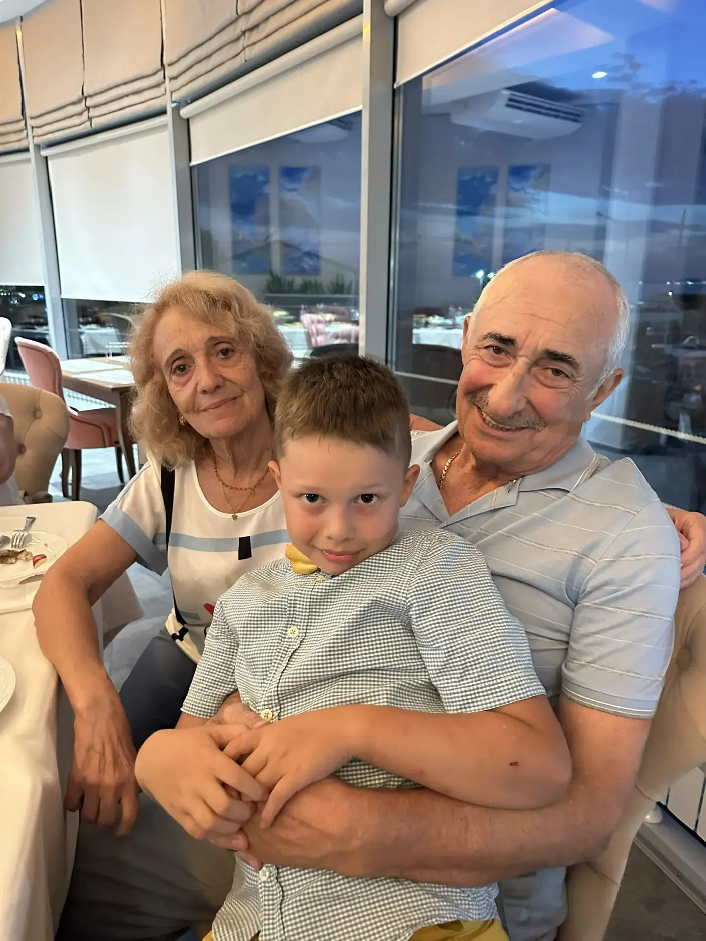 Торосян Савелий, ученик 2 "Б" класса, момочкой, с бабушками и дедушками и с любимыми родственниками