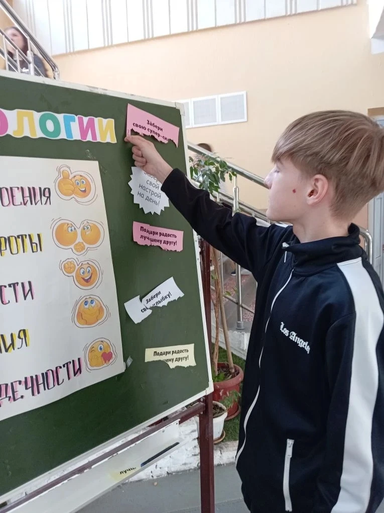 В этот день была проведена одноименная акция. На стенде при входе в школу каждый мог выбрать хорошее пожелание для себя или передать другу.