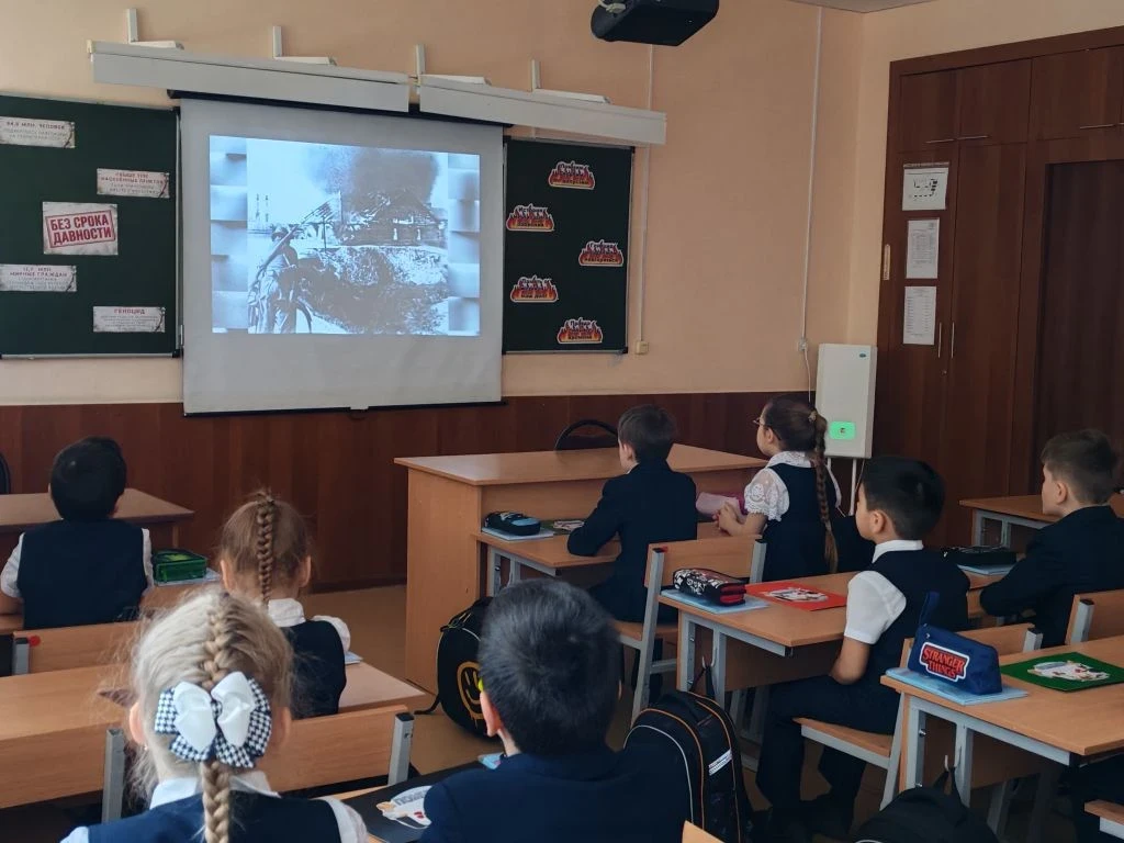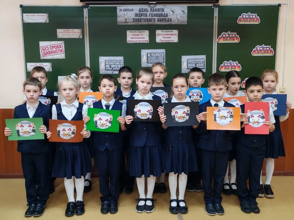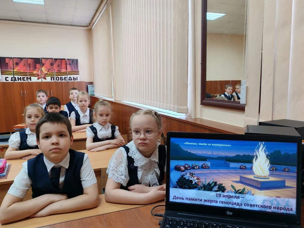 В 1-а классе прошла информационная пятиминутка, посвящённая памяти жертв геноцида советского народа. В ходе короткого, но важного разговора ребята узнали о том, как в годы Великой Отечественной войны миллионы мирных жителей нашей страны подверглись жестокому уничтожению. Говорили о трагедии, которую пережили люди, о мужестве и стойкости народа, а также о необходимости помнить и уважать историю своей Родины. Неизгладимое впечатление на первоклассников произвёл документальный короткометражный фильм «Хатынь». Они с замиранием сердца следили за судьбой жителей белорусской деревни, уничтоженной фашистами. Фильм не оставил равнодушных: в глазах ребят читались и грусть, и гордость за тех, кто не сдался, и осознание ценности мира.