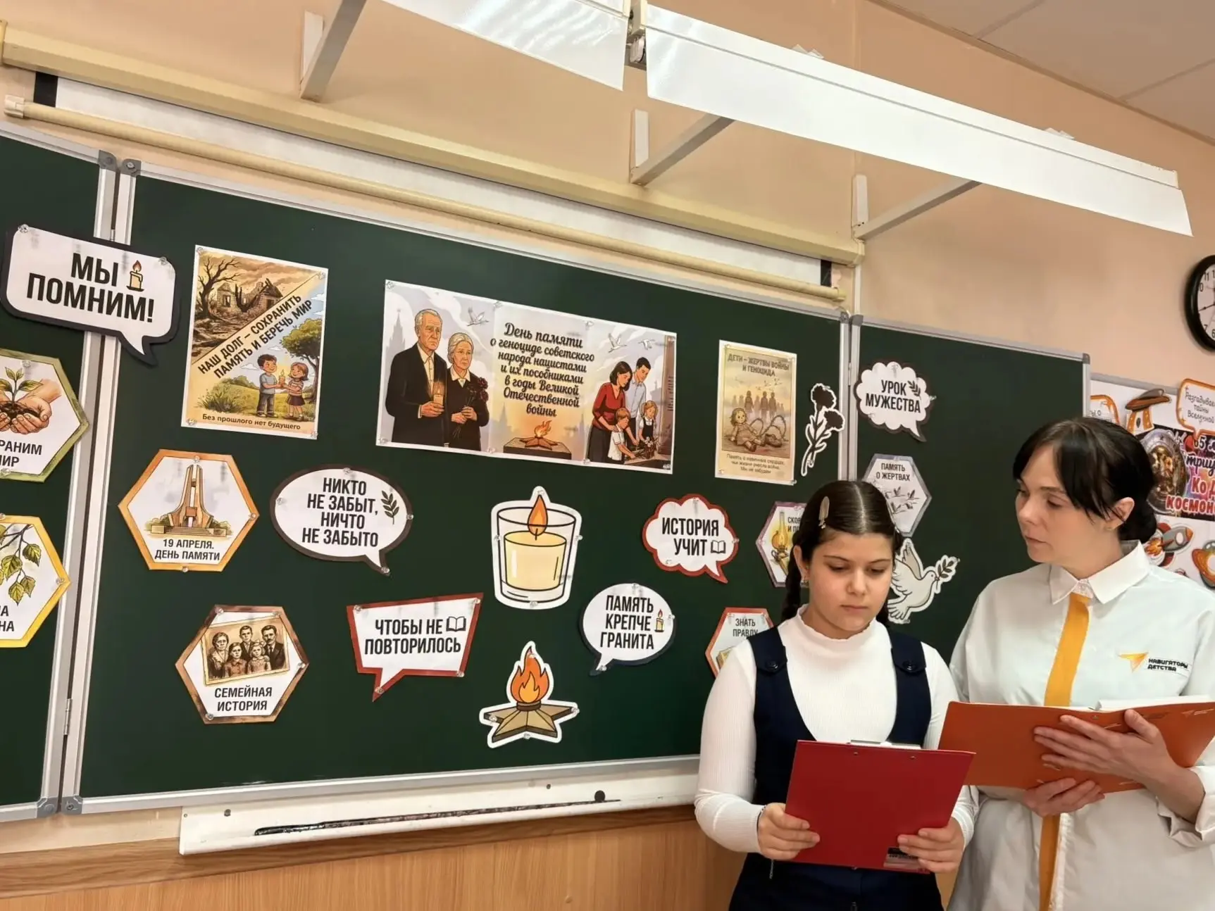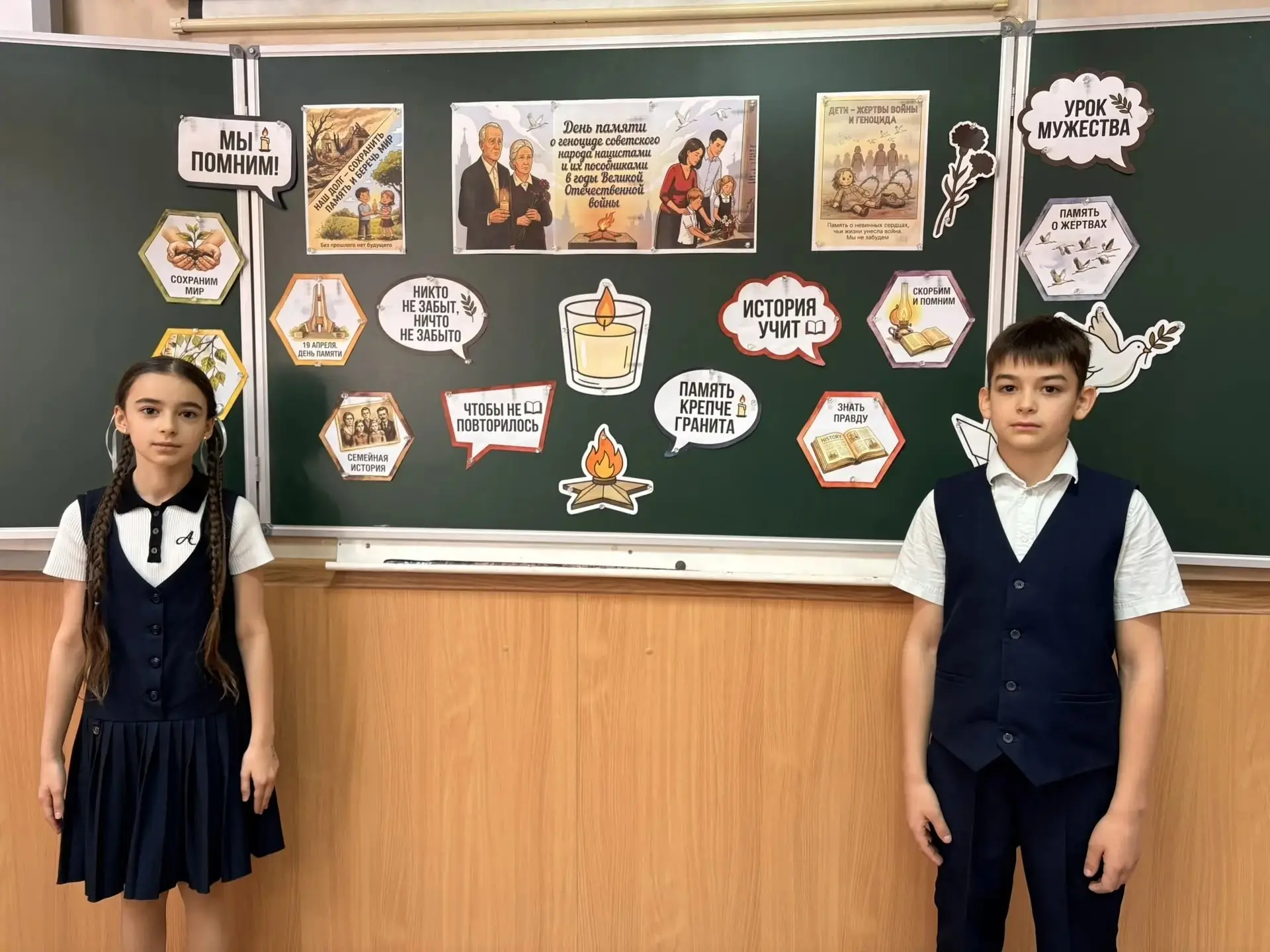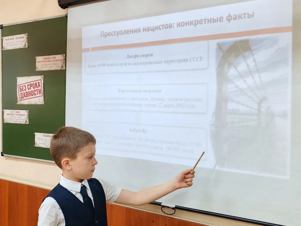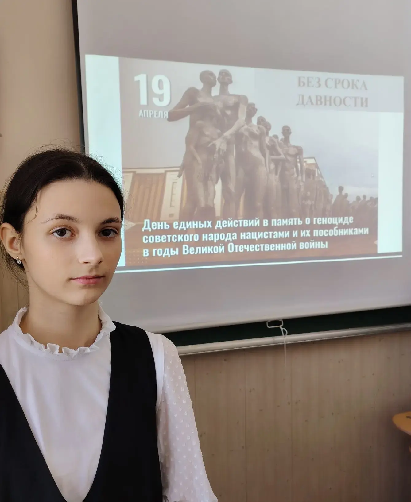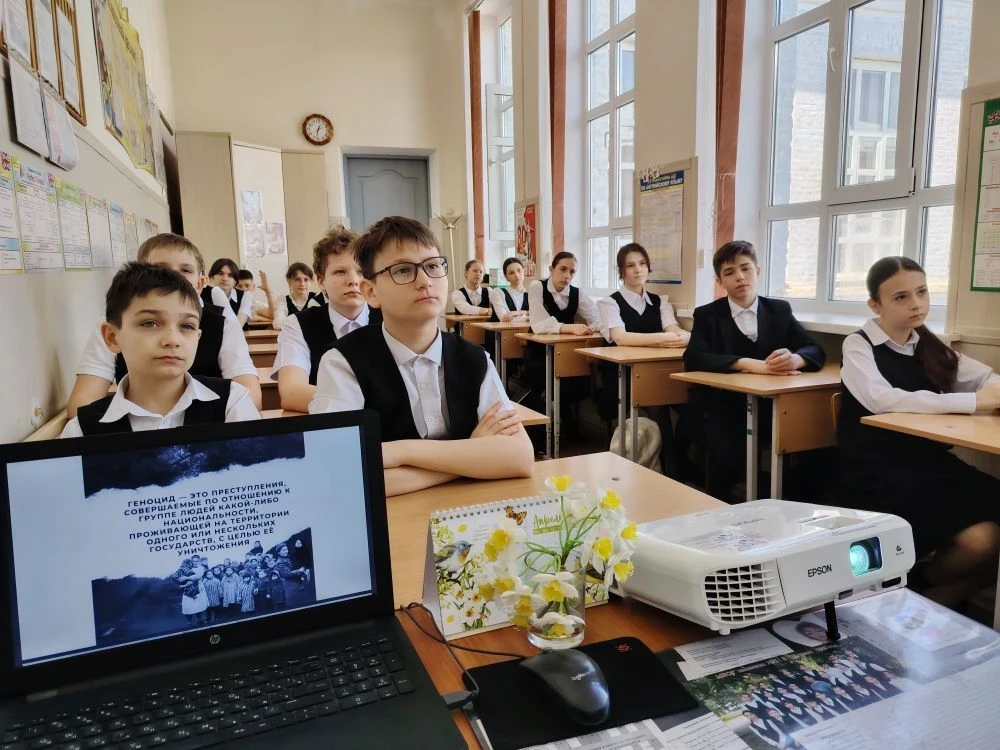 В преддверии 19 апреля Дня единых действий в память о геноциде советского народа нацистами и их пособниками в годы Великой Отечественной войны в 6В классе прошёл классный час «Без срока давности». Ребята говорили о страшной странице истории — целенаправленном уничтожении мирного советского населения фашистами и их пособниками в 1941–1945 годах.