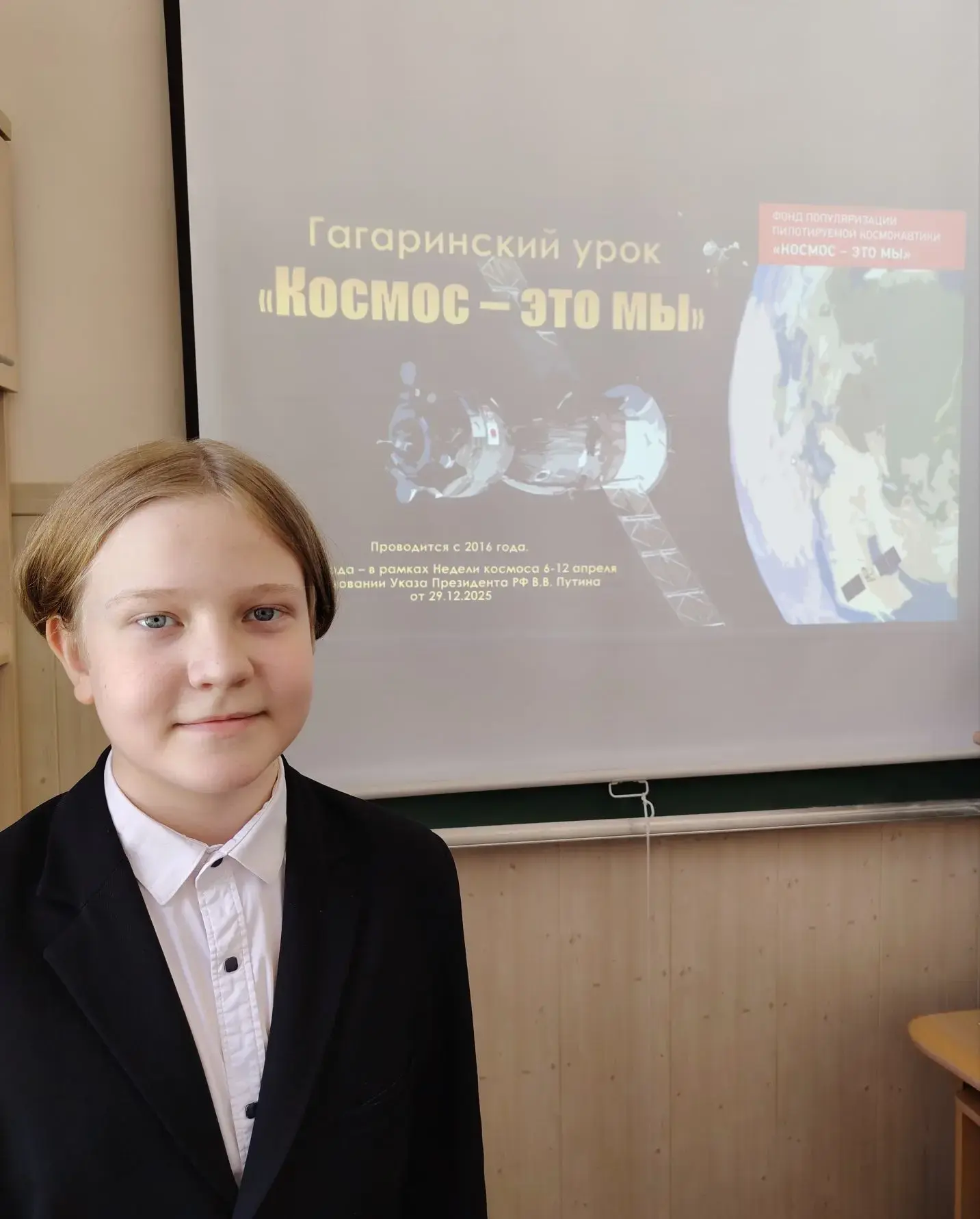 В рамках недели космонавтики в 6В классе прошёл "Гагаринский урок "Космос - это мы" . В нынешнем юбилейном году его тема-
