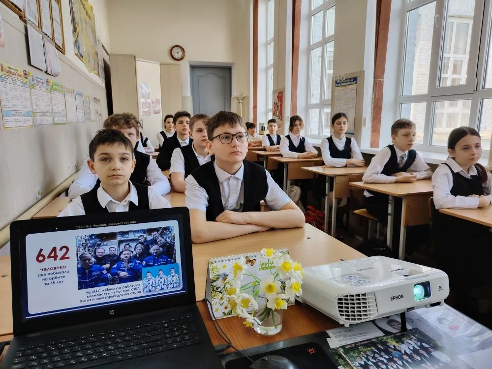 Во время урока ребята узнали о том, с чего началась история пилотируемых космических полётов, какие работы ведутся на орбите в настоящее время и к каким будущим миссиям готовятся космонавты. Кроме того,