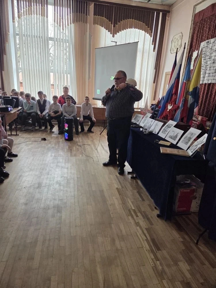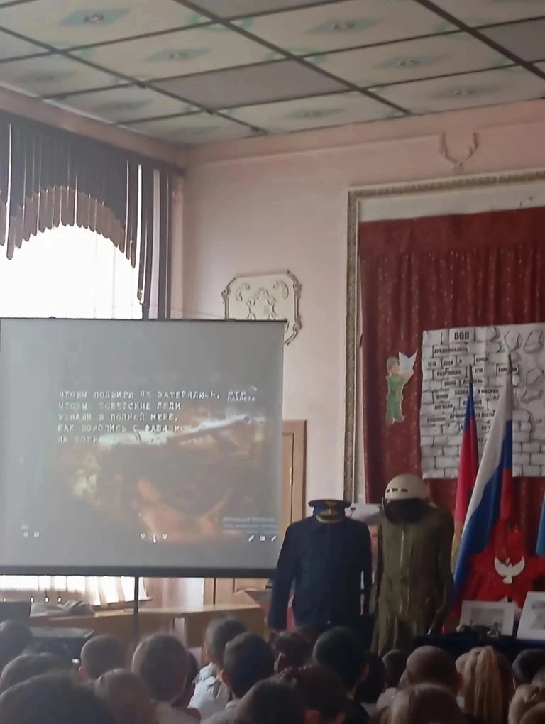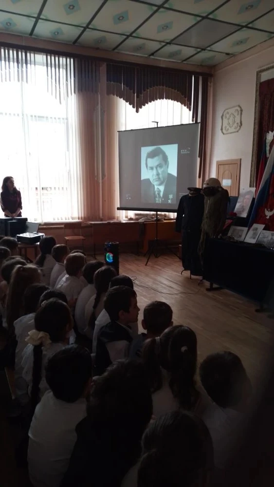 Сегодня в актовом зале для учащихся 1-11 классов прошел музейный урок "Повторивший подвиг Маресьева".