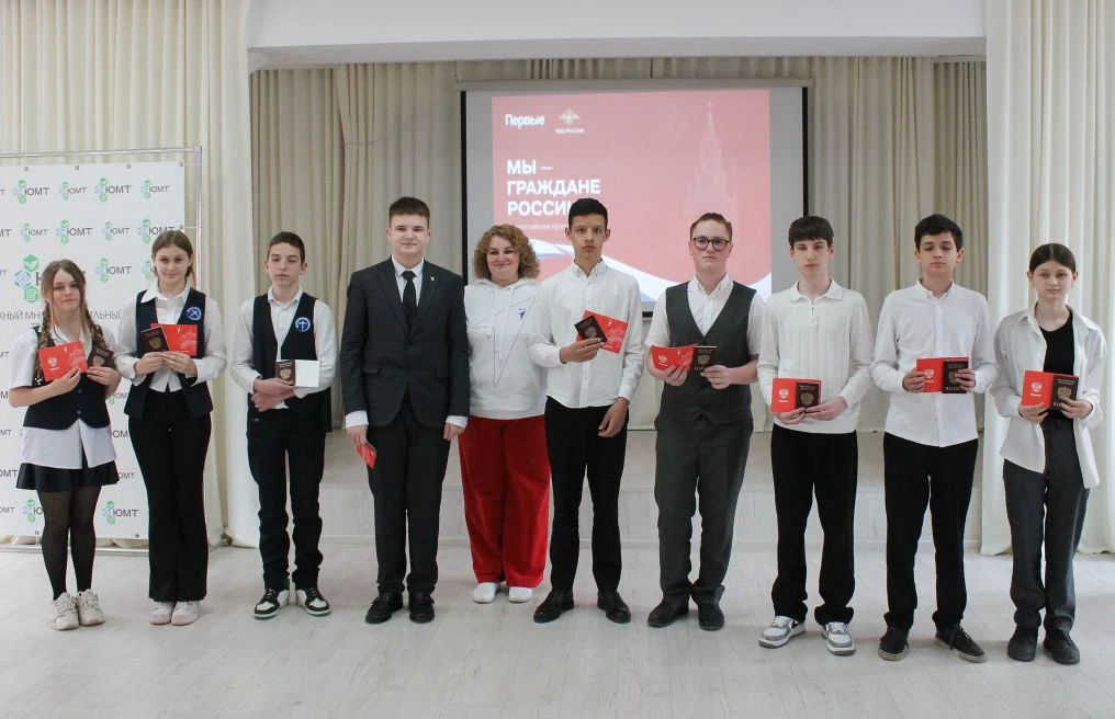 В преддверии Дня космонавтики учащиеся 8Б класса: Пшеницына Анастасия, Егельский Никос, Бойко Лев приняли участие в по-настоящему знаковой церемонии «Мы — граждане России!». Сегодня ребята получили свои первые паспорта и памятные обложки, открывая новую страницу в жизни.