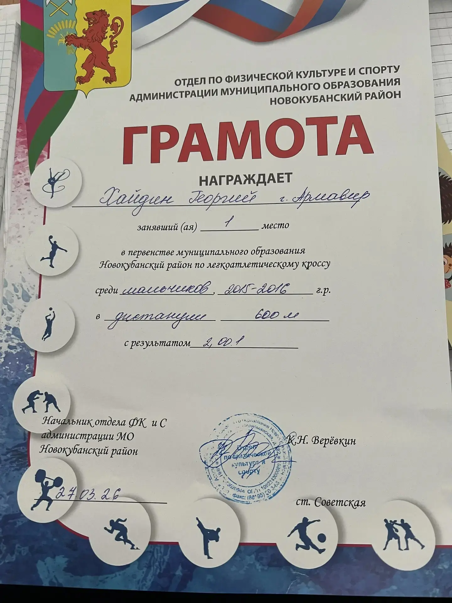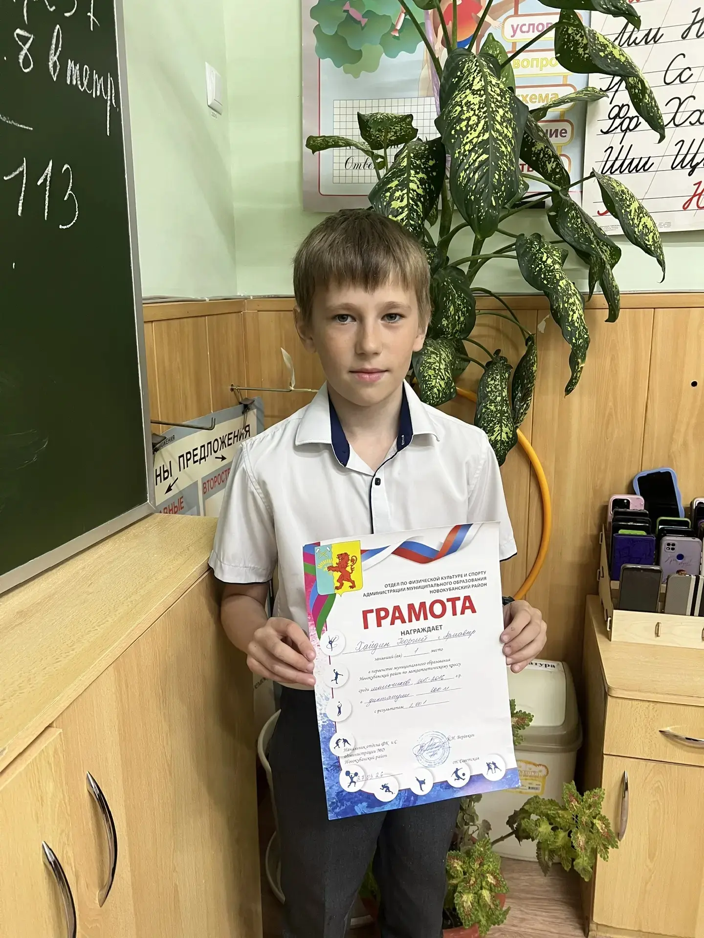 С гордостью сообщаем, что ученик 4А класса Хайдин Георгий занял 1 место🏆 в первенстве муниципального образования Новокубанский район по легкоатлетическому кроссу на дистанции 600 метров!