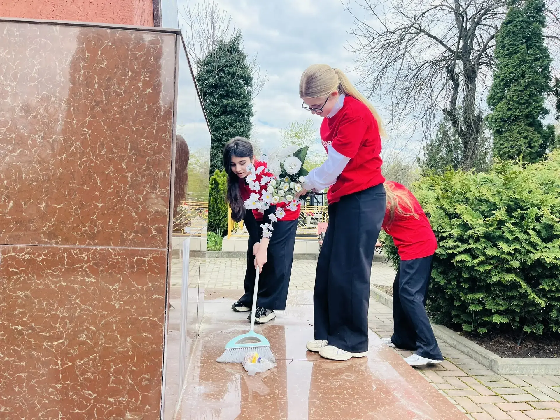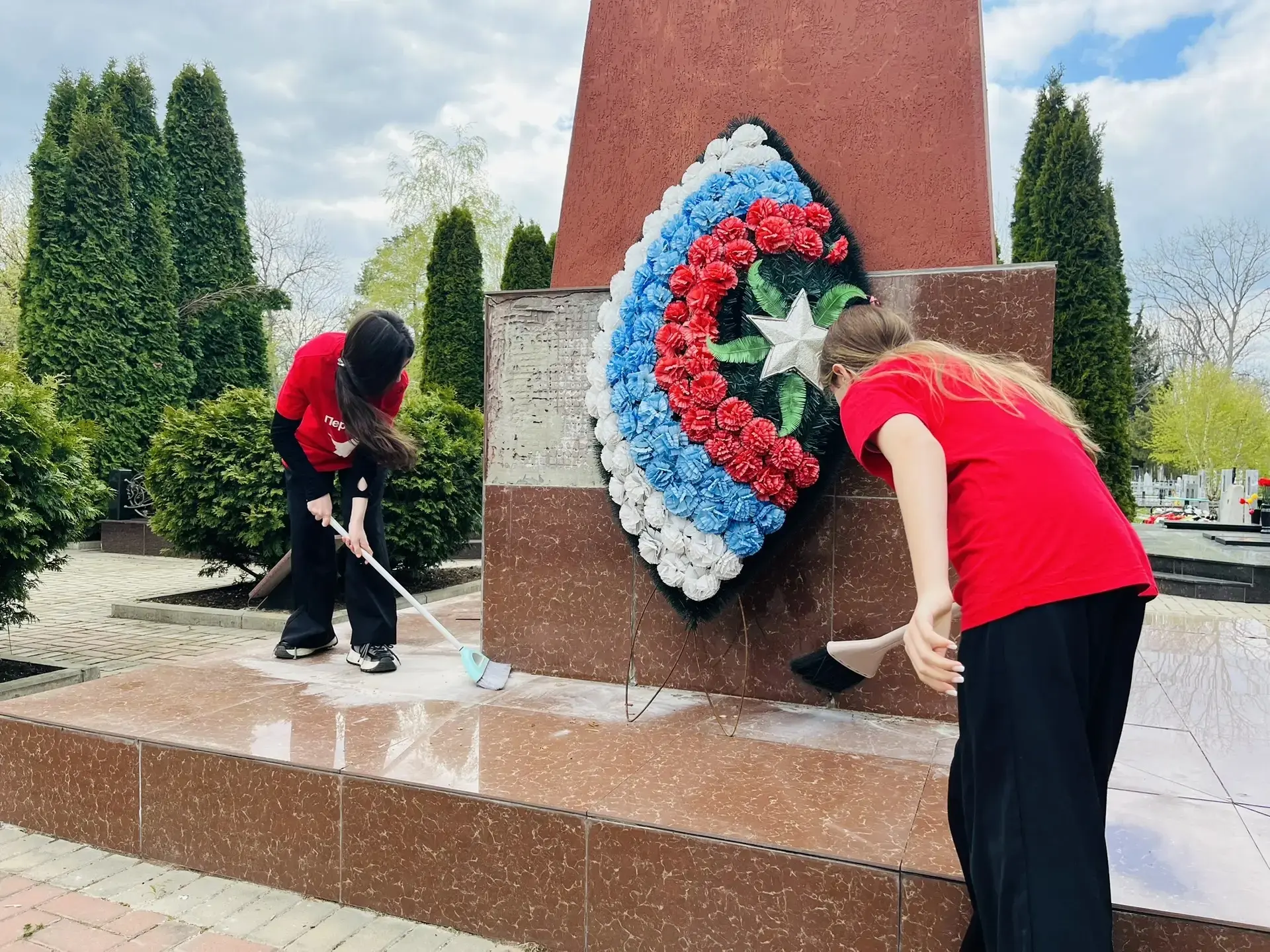 Вместе ребята навели порядок на мемориале: подмели дорожки, вырвали сорняки, чтобы место памяти выглядело достойно. Завершили акцию возложением цветов — в знак благодарности и скорби по тем, кто не пожалел жизни ради будущего страны.
