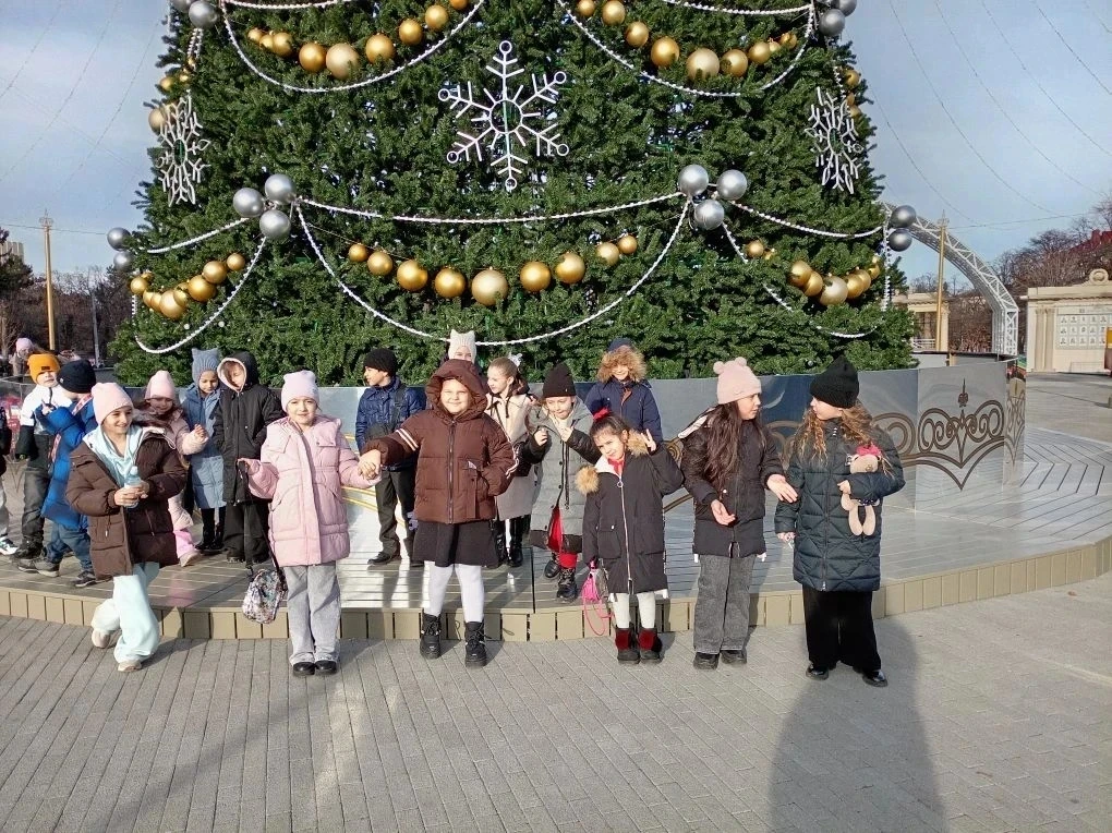 Особенное впечатление произвела главная ёлка города🎄, сверкавшая яркими огнями и праздничными украшениями. Дети восхищались её красотой, фотографировались на память и делились впечатлениями друг с другом.