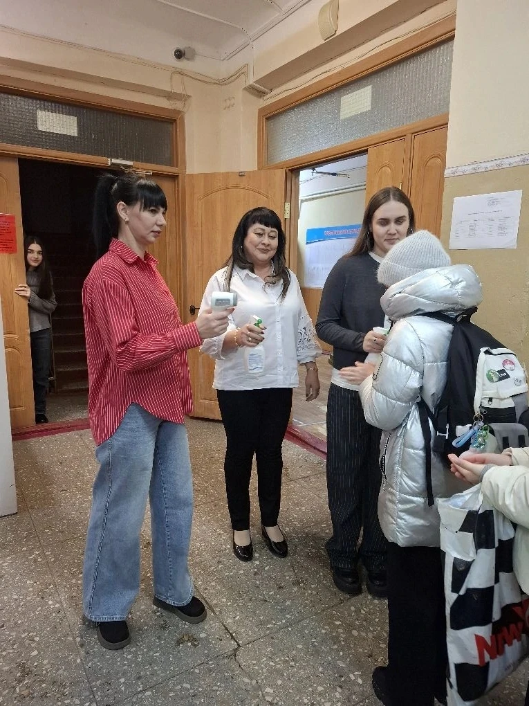 В нашей школе ежедневно проходит утренний медицинский фильтр. Каждый ученик перед началом занятий проходит обязательную процедуру контроля здоровья: