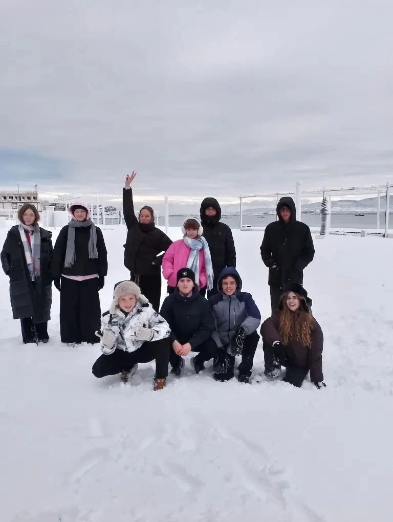 Учащиеся МБОУ СОШ 2 им. Адмирала Ушакова не могли не нарадоваться, увидев сколько снега у нас было сегодня.