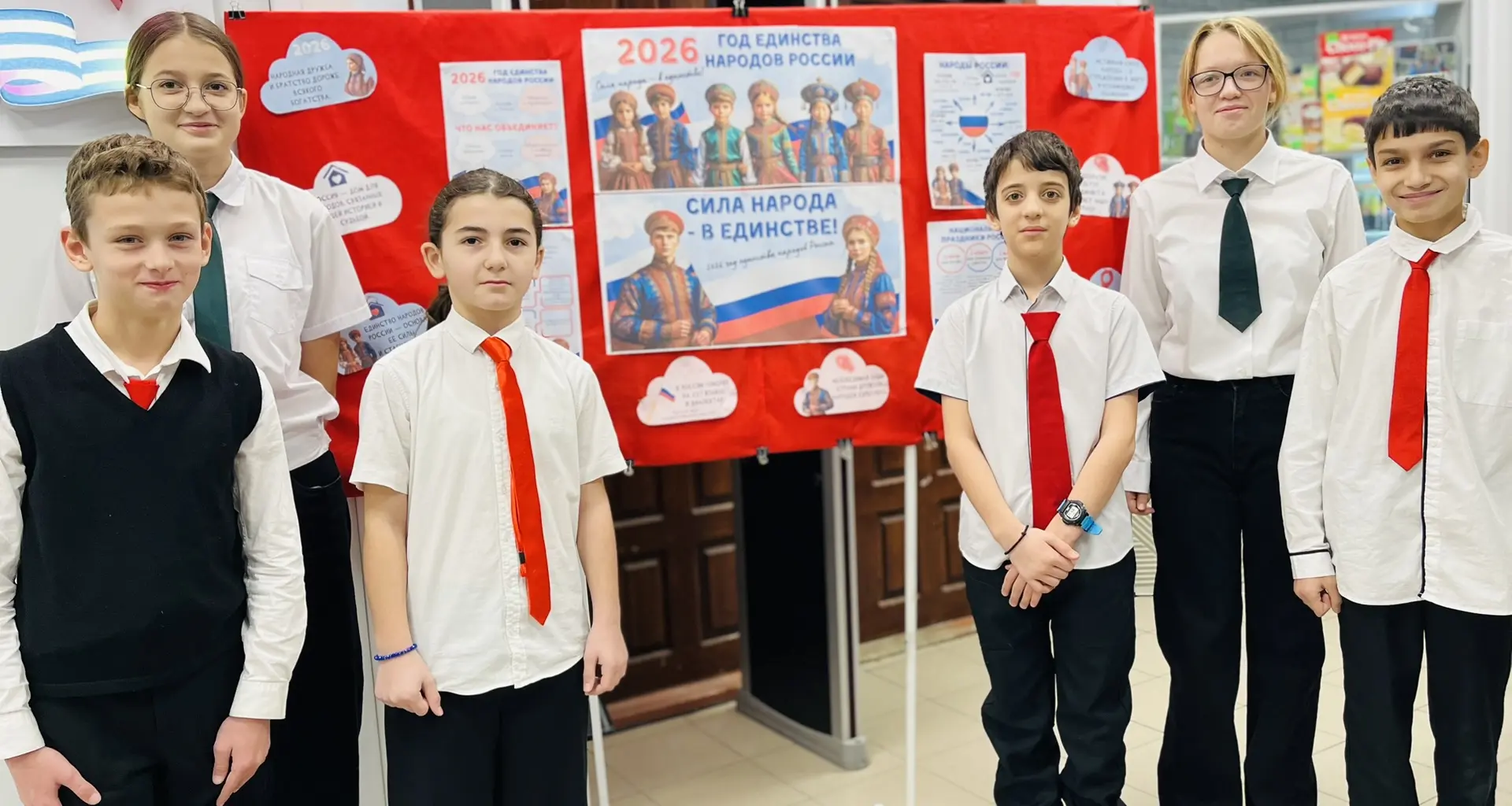 13 января воспитательным отделом МБОУ СОШ 2 им. Адмирала Ушакова оформлен тематический стенд, посвящённый Году единства народов России❗️