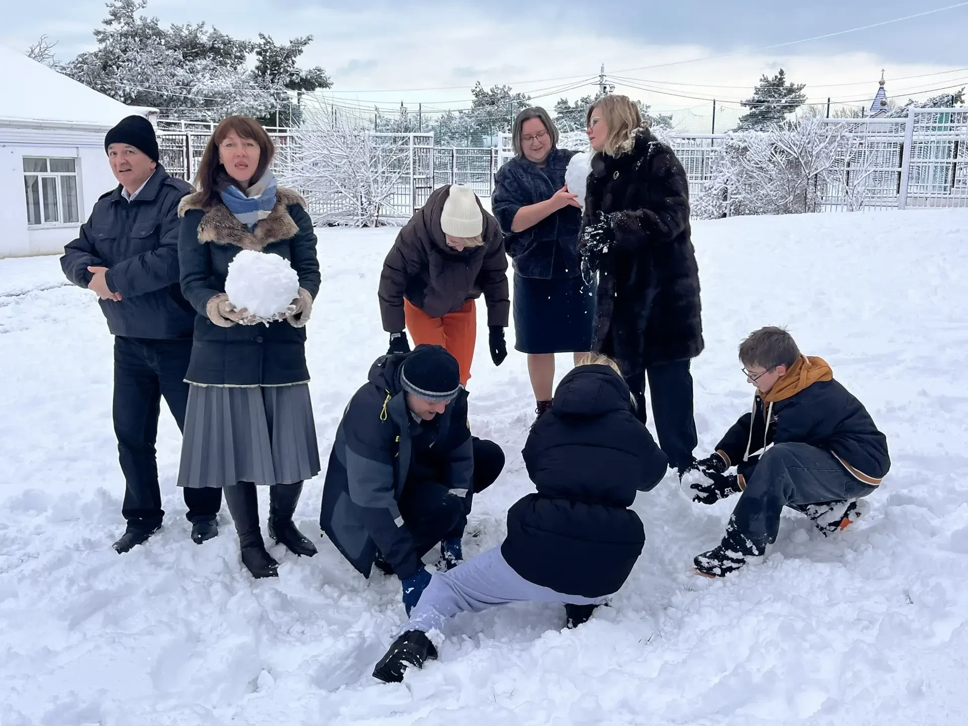 Учащиеся, педагоги с восторгом насладились зимними забавами, поиграли в снежки, лепили снеговиков.