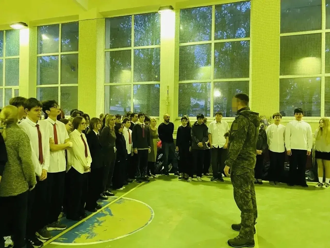 На торжественной линейке присутствовали гости, командир роты, ст. лейтенант, Дмитрий Вадимович.