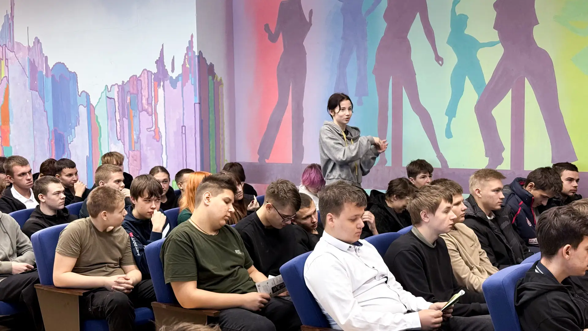 💬 Мероприятие началось с выступления специалиста по связям со СМИ Ольги Попко. Она рассказала, как обезопасить себя от мошенников, а также объяснила ребятам такие понятия, как «терроризм» и «экстремизм», в чем они выражаются и как себя защитить.