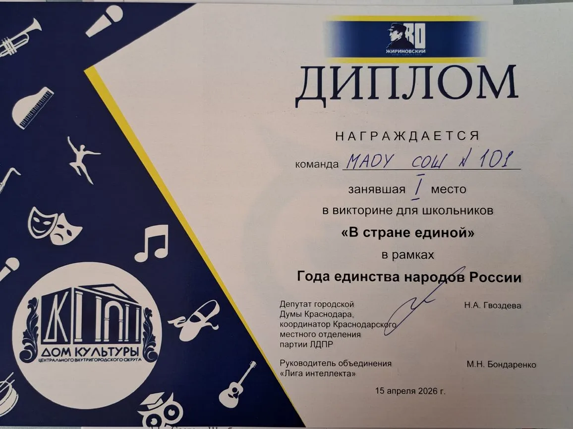 Школьная команда "Комета" приняла участие в городской викторине "В стране единой", посвящённой Году единства народов России. Ребята стали ПОБЕДИТЕЛЯМИ! Мы поздравляем команду с заслуженной победой. Ребята, мы вами гордимся!