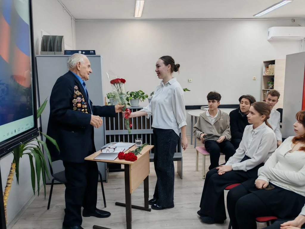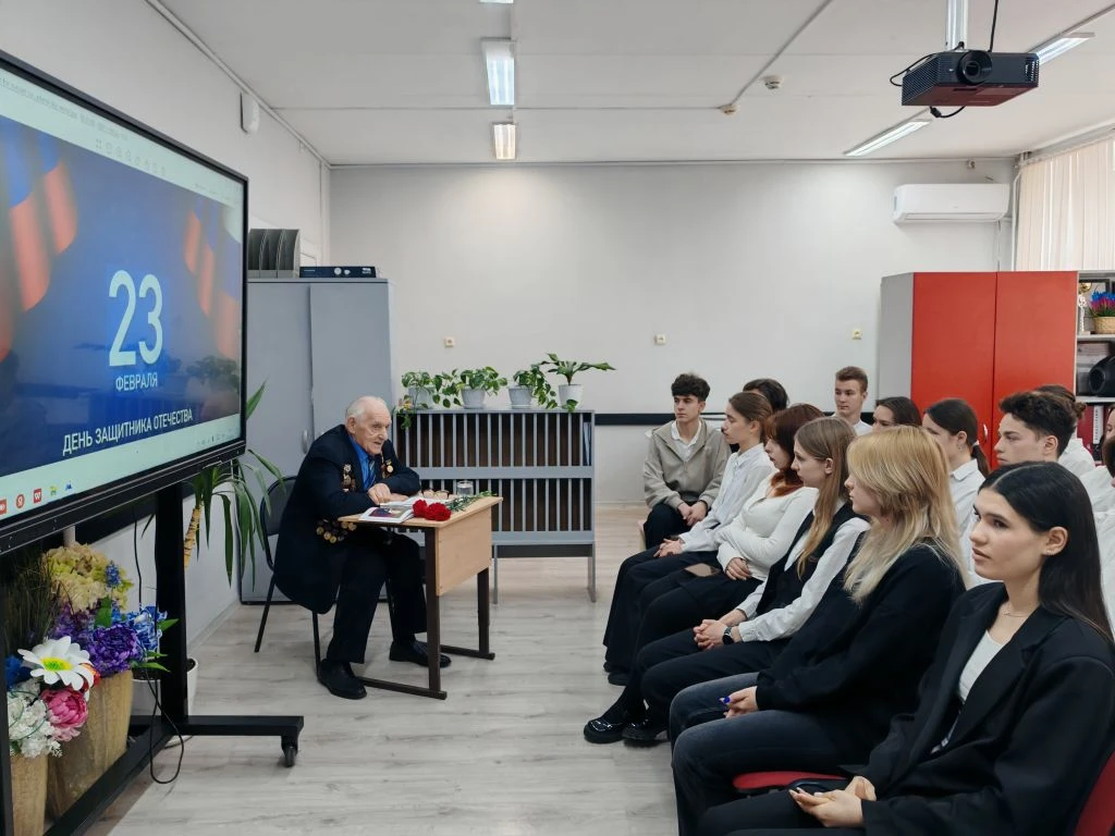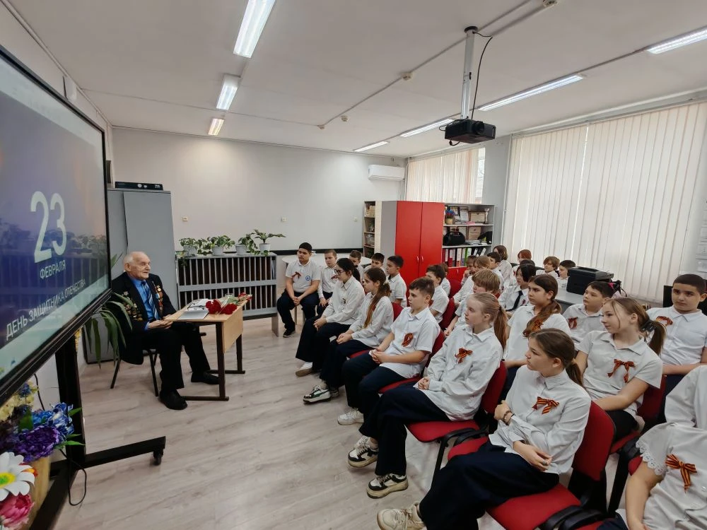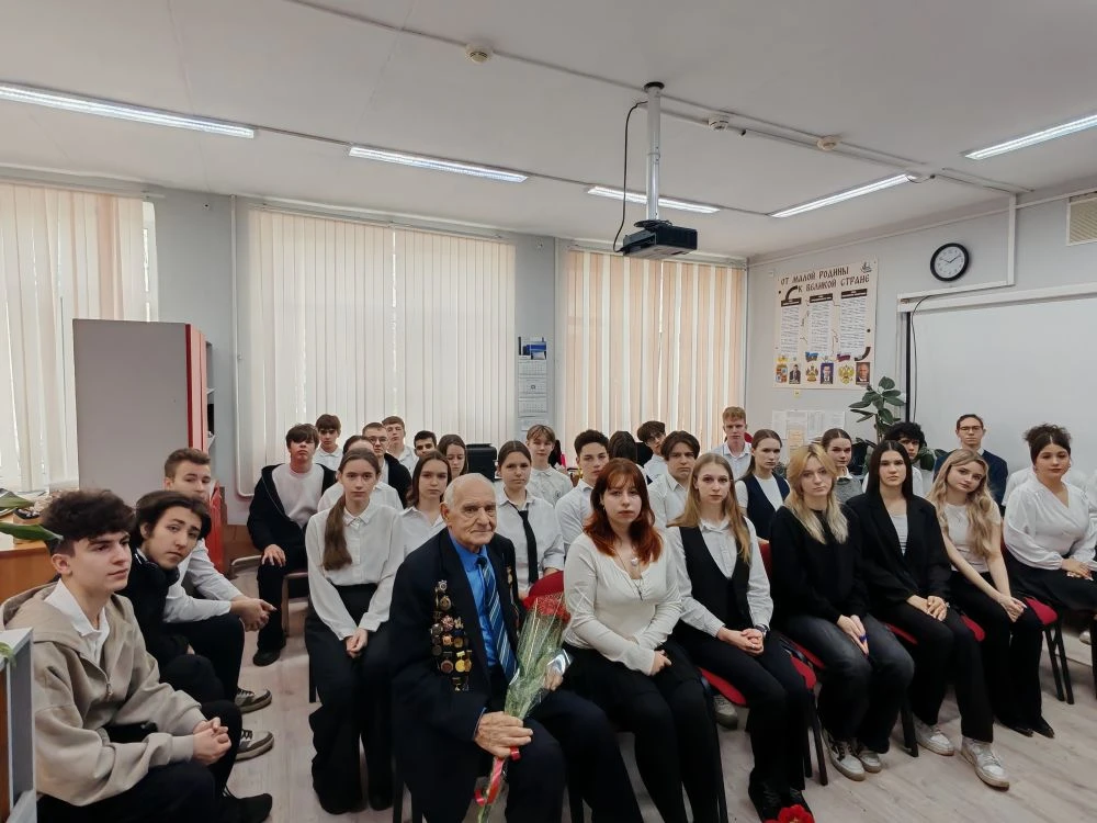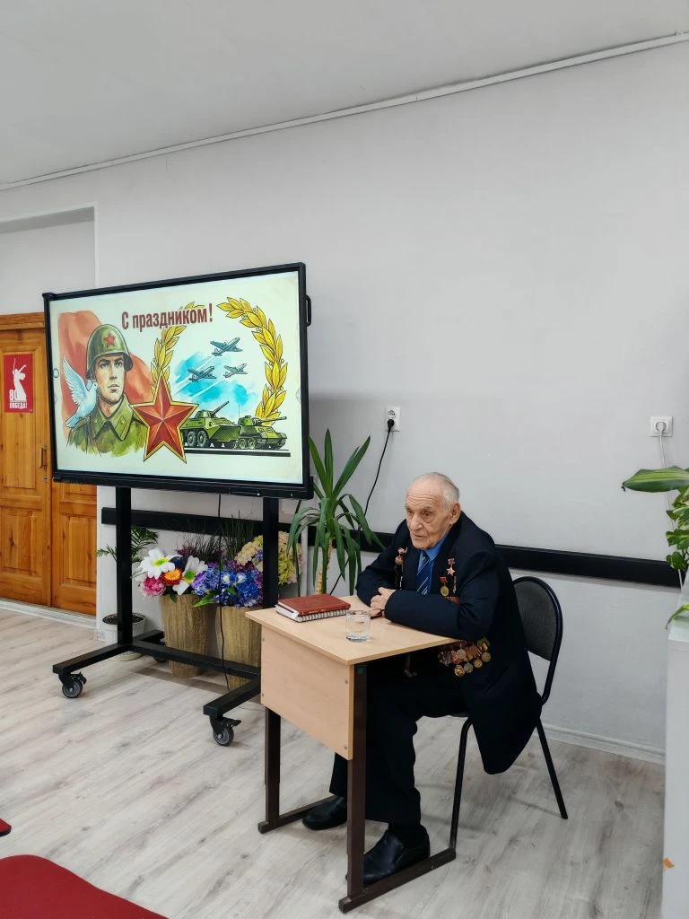 Анатолий Иванович встретился с учениками 11 А, 11 Б и 5 Е классов. Рассказал ребятам о своей боевой и трудовой жизни, поделился воспоминаниями о Великой Отечественной войне. До глубины души тронули всех стихи о Родине в исполнении ветерана. В завершение мероприятия, ребята получили мудрые напутствия и поздравили Анатолия Ивановича с наступающим Днем защитника Отечества.
