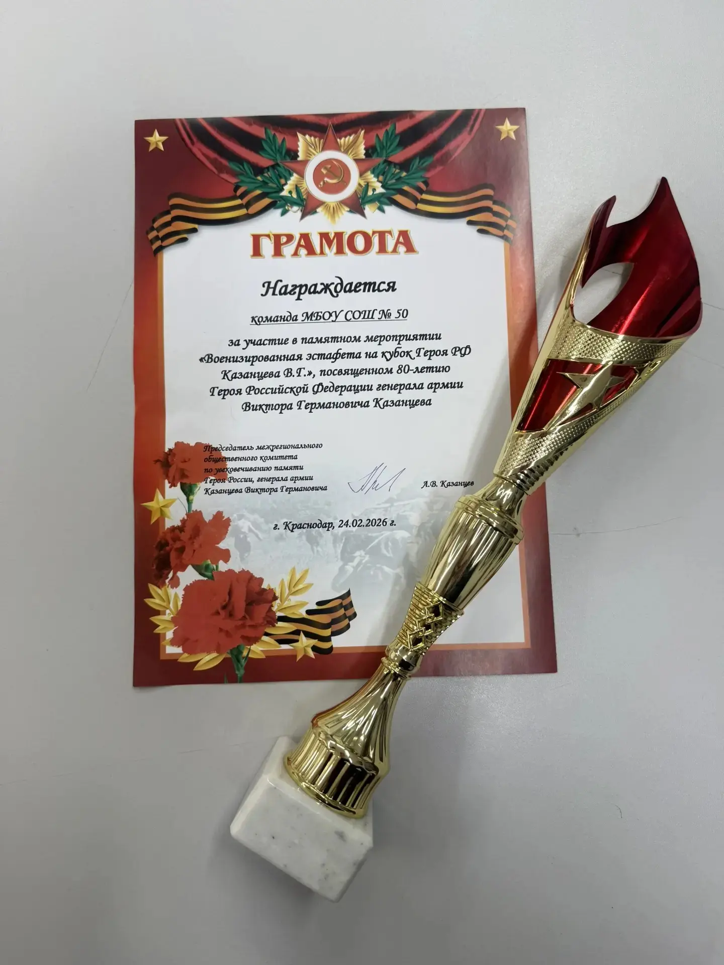 Поздравляем команду МАОУ СОШ 50, принявшую участие в памятном мероприятии "Военизированная эстафета на кубок Героя РФ, Казанцев В. Г.", посвященном 80-летию Героя Российской Федерации генерала армии Виктора Германовича Казанцева. Молодцы! Гордимся! 👏🎉