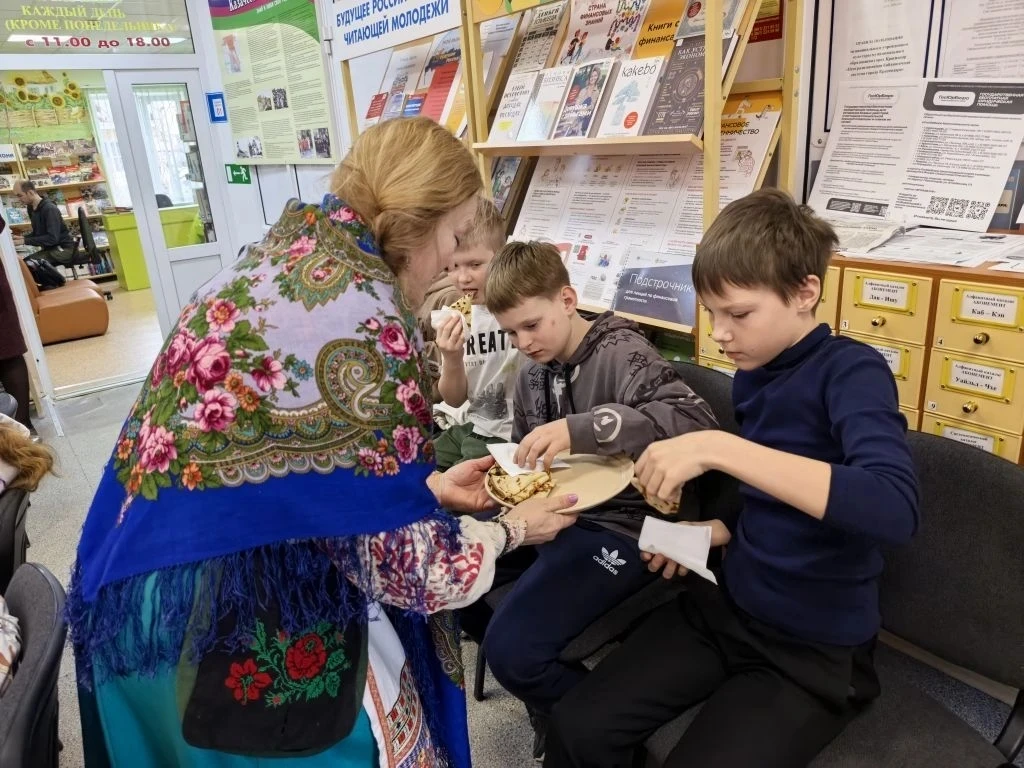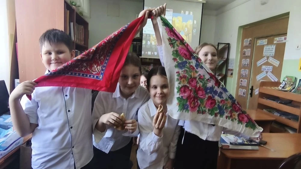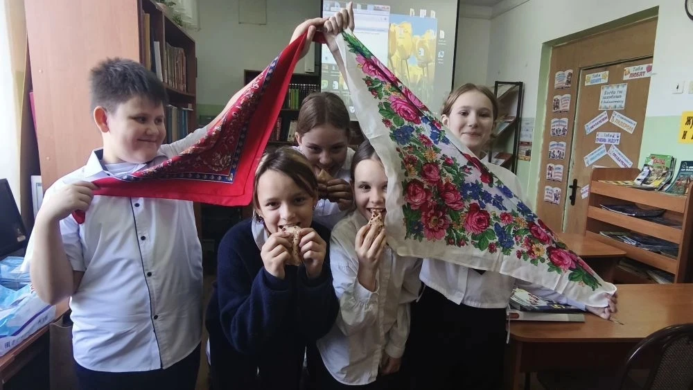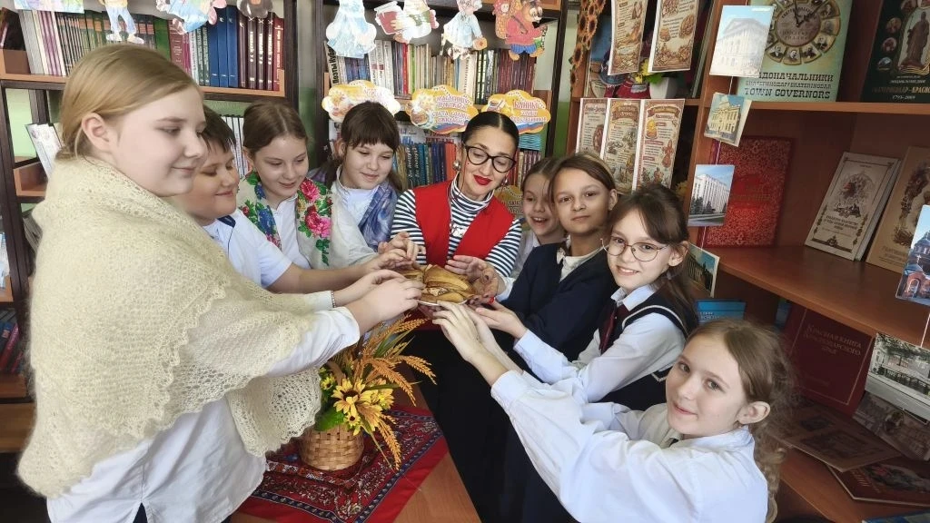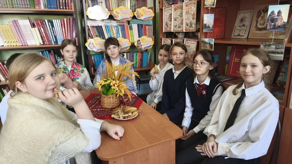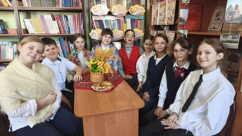 Сегодня ученики 5 Г класса посетили библиотеку им. Т.Г. Шевченко и приняли участие в красочном мероприятии "Красна изба не углами, а пирогами".