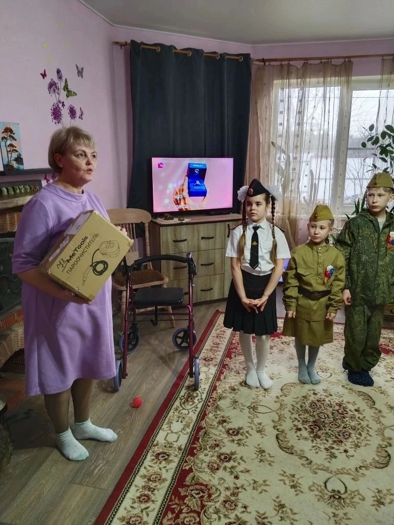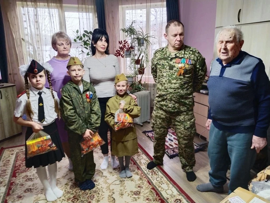 Ученики нашей школы, под руководством учителя ОБЗР Дубровина Сергея Анатольевича, приняли участие в поздравлении ветерана, участника Великой Отечественной войны, Щукина Алексея Кирилловича с Днём защитника Отечества. Алексей Кириллович проживает в СНТ "Прогресс-Север" и в марте ему исполнится 102 года. Для ветерана подготовили небольшой концерт, вручили подарки. А также наши активные ребята помогли Алексею Кирилловичу навести порядок во дворе.
