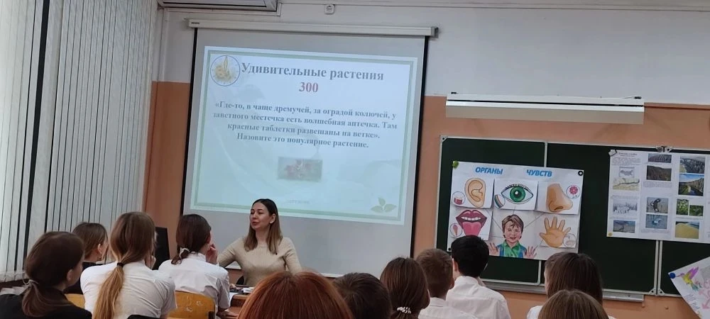 Учитель биологии, Верзунова Светлана Михайловна, завершила проведение предметной недели естественнонаучного цикла интеллектуальной викториной. Ученики 7 класса отвечали на вопросы по теме "Уникальные растения мира".