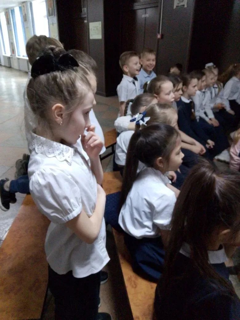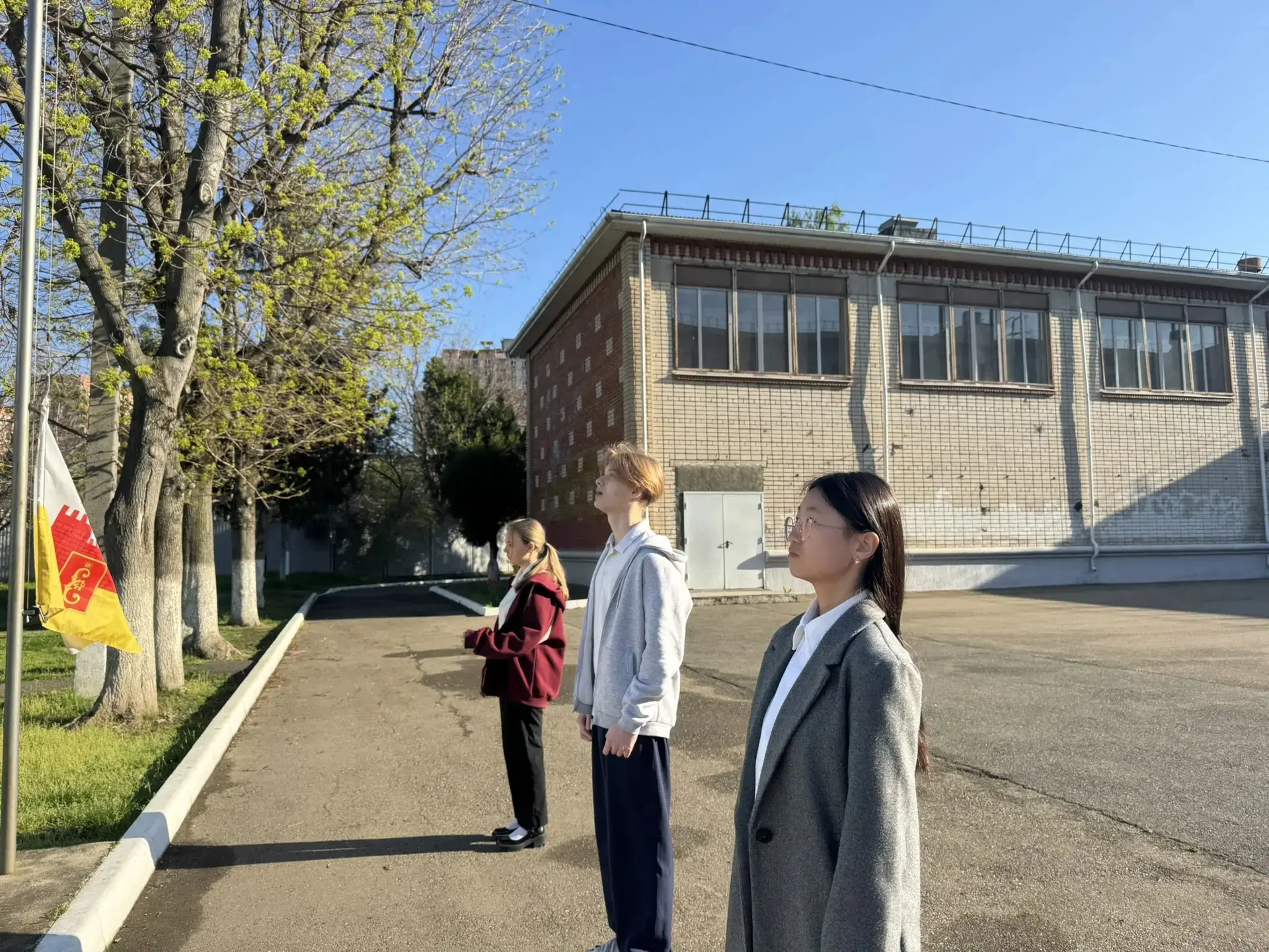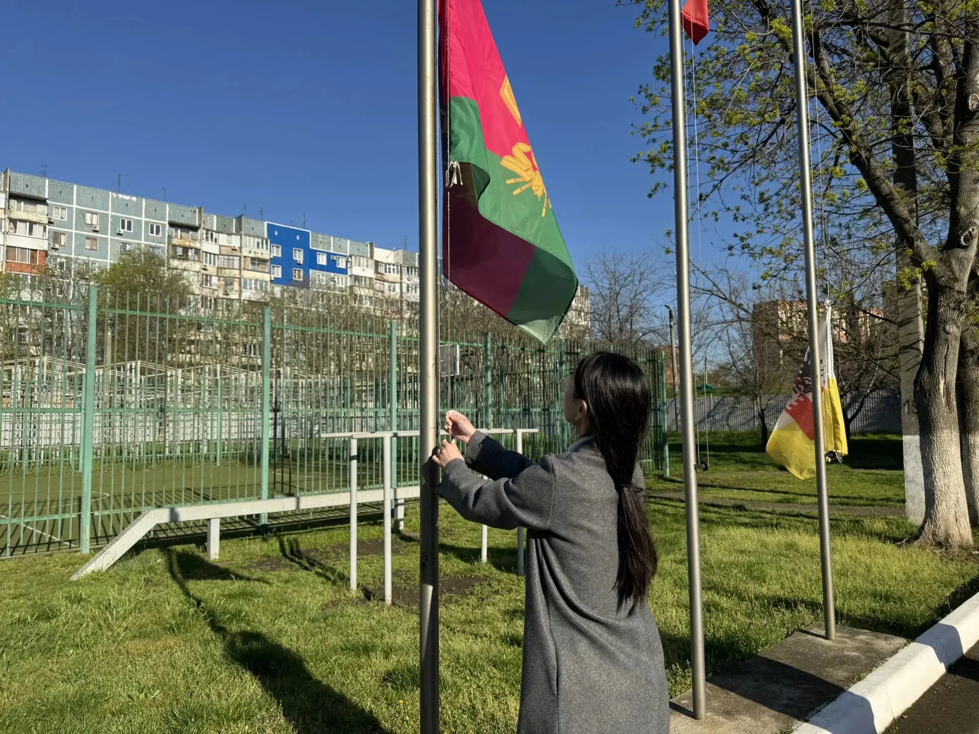 Линейка 6 апреля, на которой флаги поднимали учащиеся 10Б и 10В классов.