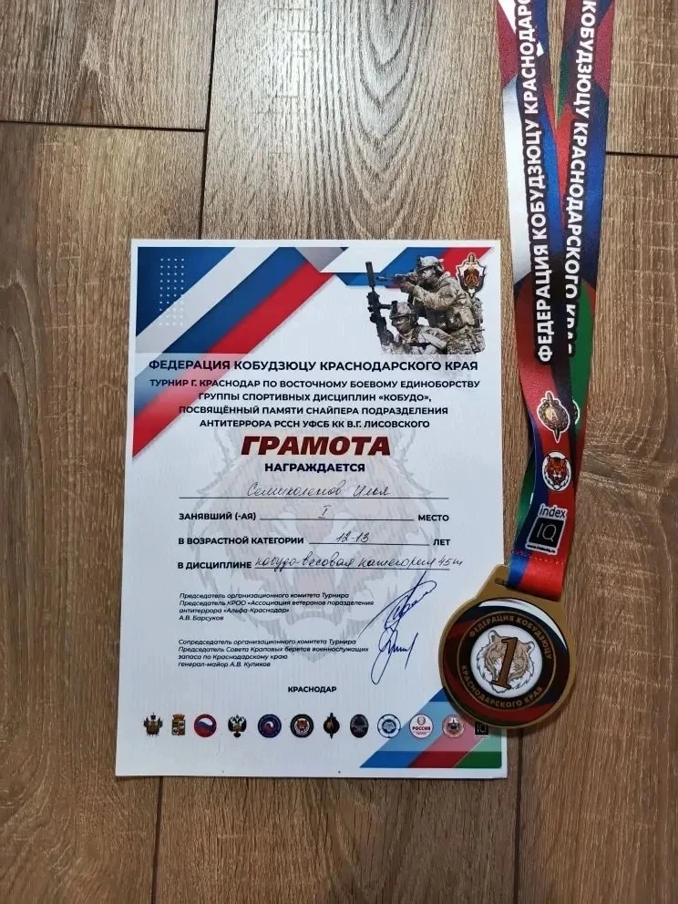 Учащийся 6Б класса Семиколенов Илья стал победителем турнира по восточному боевому единоборству «кобудо», посвящённому памяти снайпера подразделения антитеррора РССН УФСБ КК В.Г. Лисовского. Поздравляем Илью и желаем дальнейших успехов и побед!