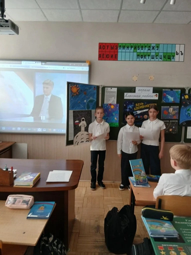 В гимназии проходит Неделя космонавтики. В музее авиации и космонавтики организован видеосалон. Просмотр видеофильма в 3Б.