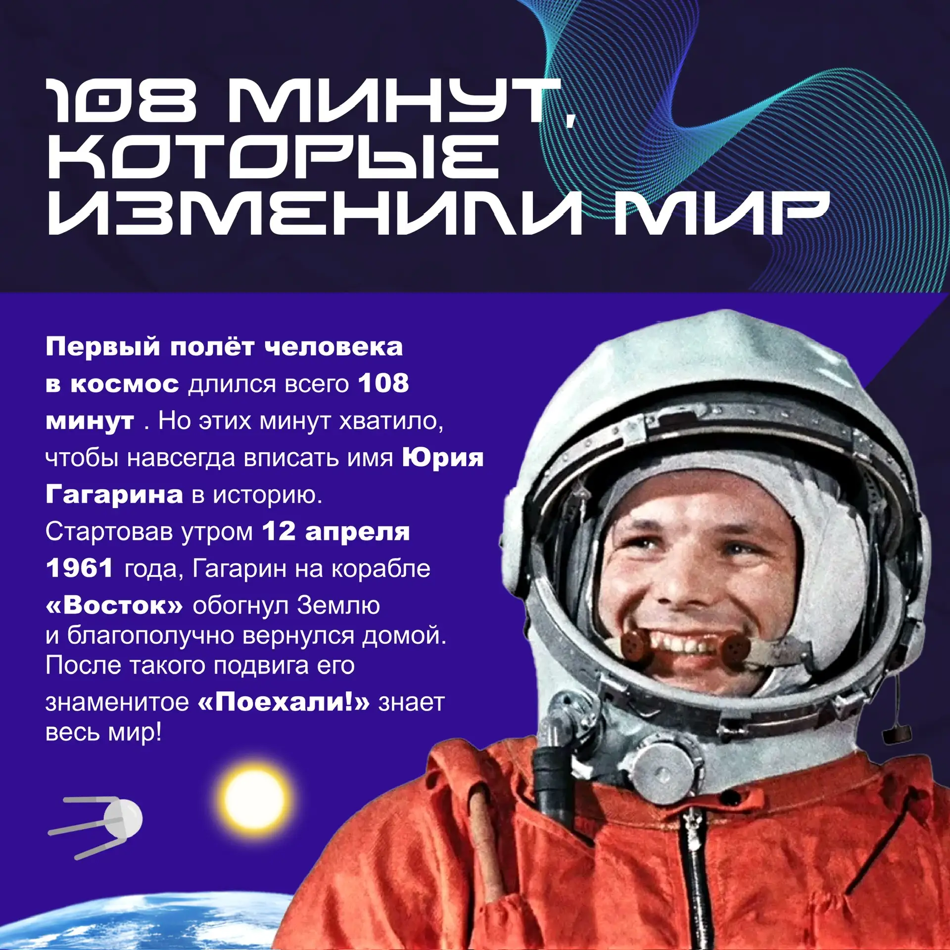 🇷🇺❤️Мы подготовили для вас новые карточки с историческими фактами о легендарном полёте — читайте, узнавайте новое и вдохновляйтесь! 💫📖🧑🚀