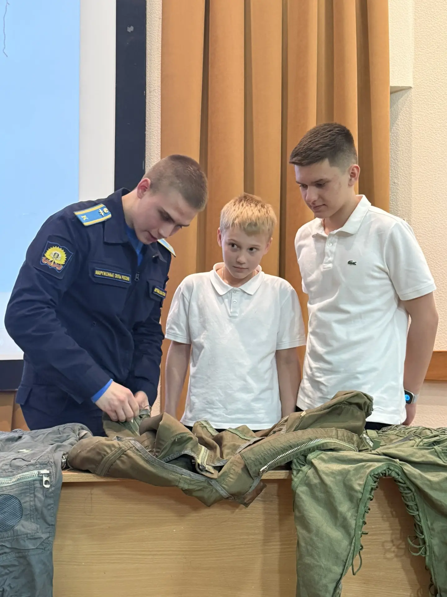 Ребята с огромным интересом слушали увлекательные рассказы о космосе и подвигах космонавтов 🌌🚀🦸♂️. А потом у школьников появилась уникальная возможность примерить настоящие лётные костюмы — каждый смог на мгновение почувствовать себя отважным пилотом! ✈️🪖🥽