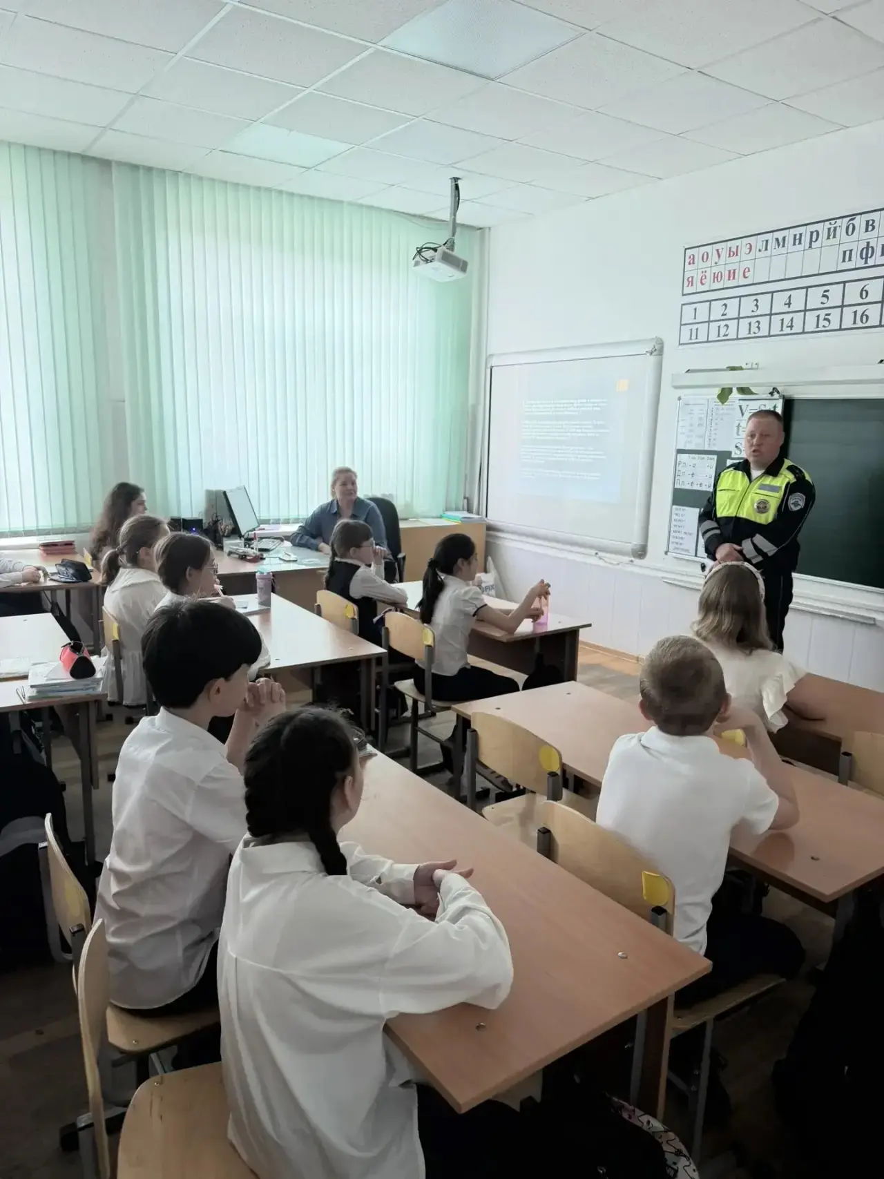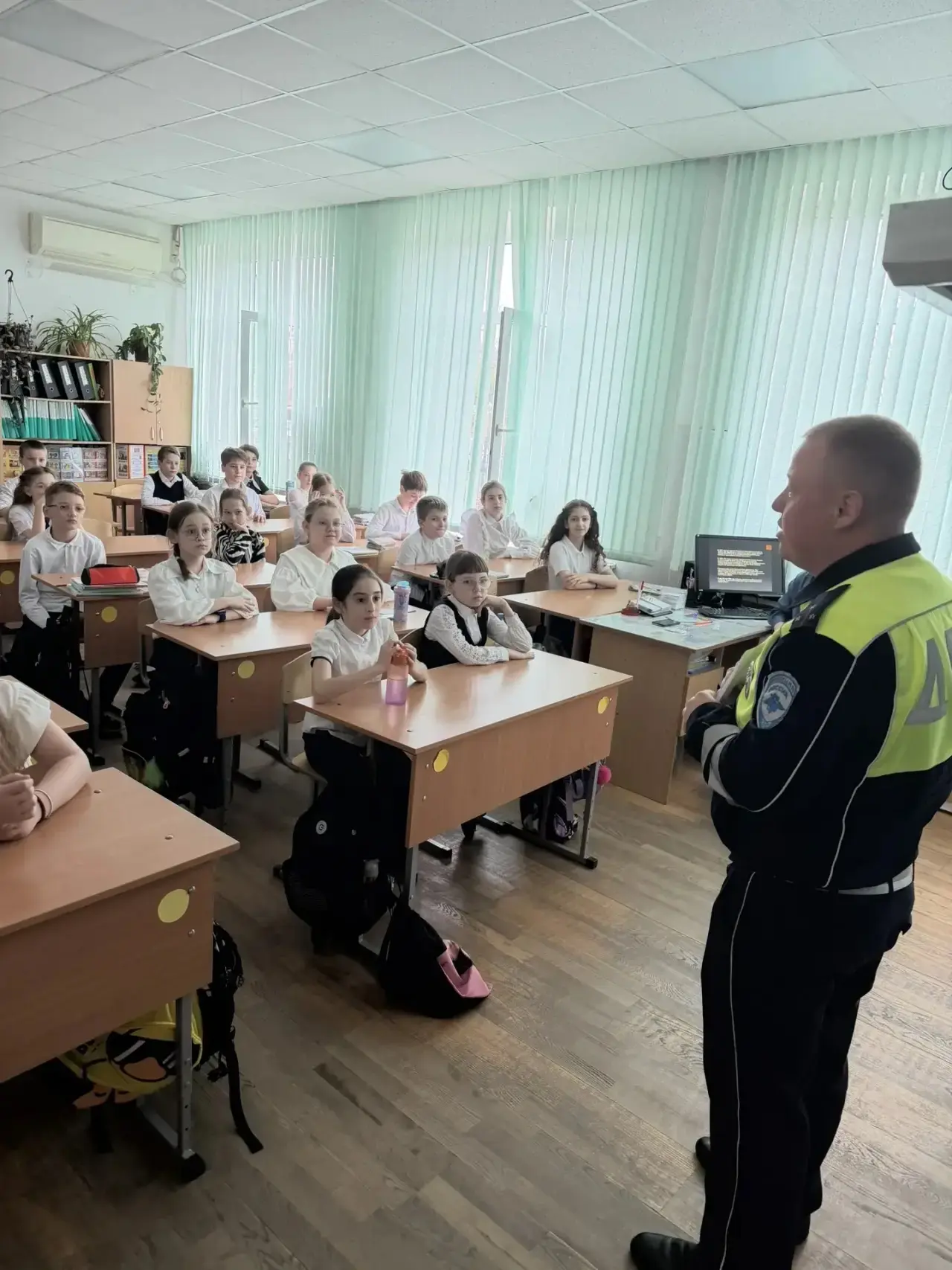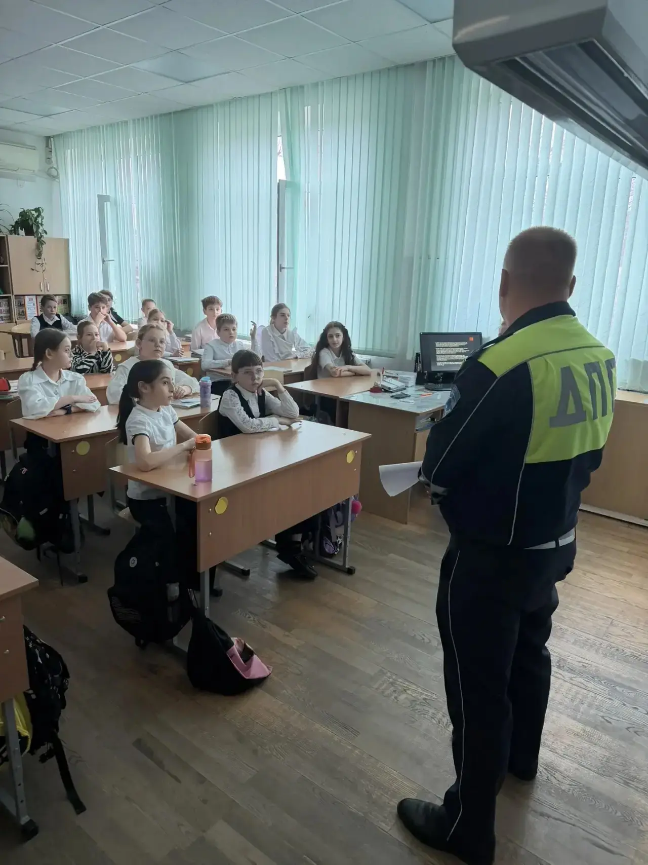 07.04.2026г. в 1”Б”и 4 “А” классе прошла беседа с инспектором ДПС «Правила пешехода».