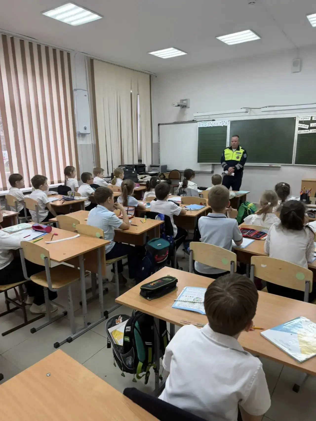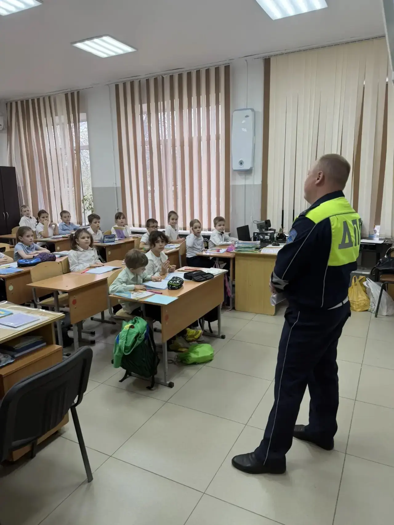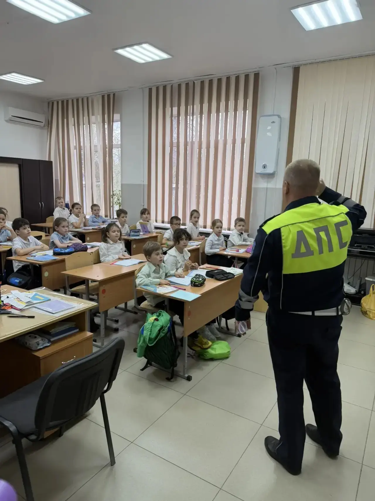 07.04.2026г. в 1”Б”и 4 “А” классе прошла беседа с инспектором ДПС «Правила пешехода».
