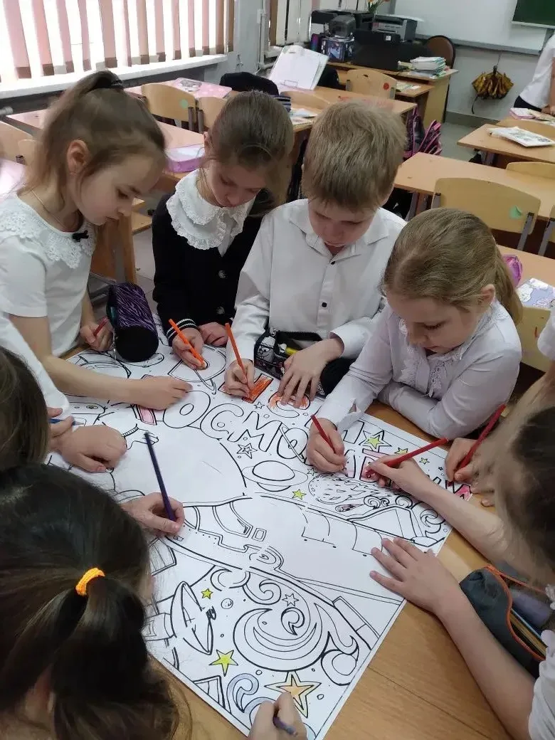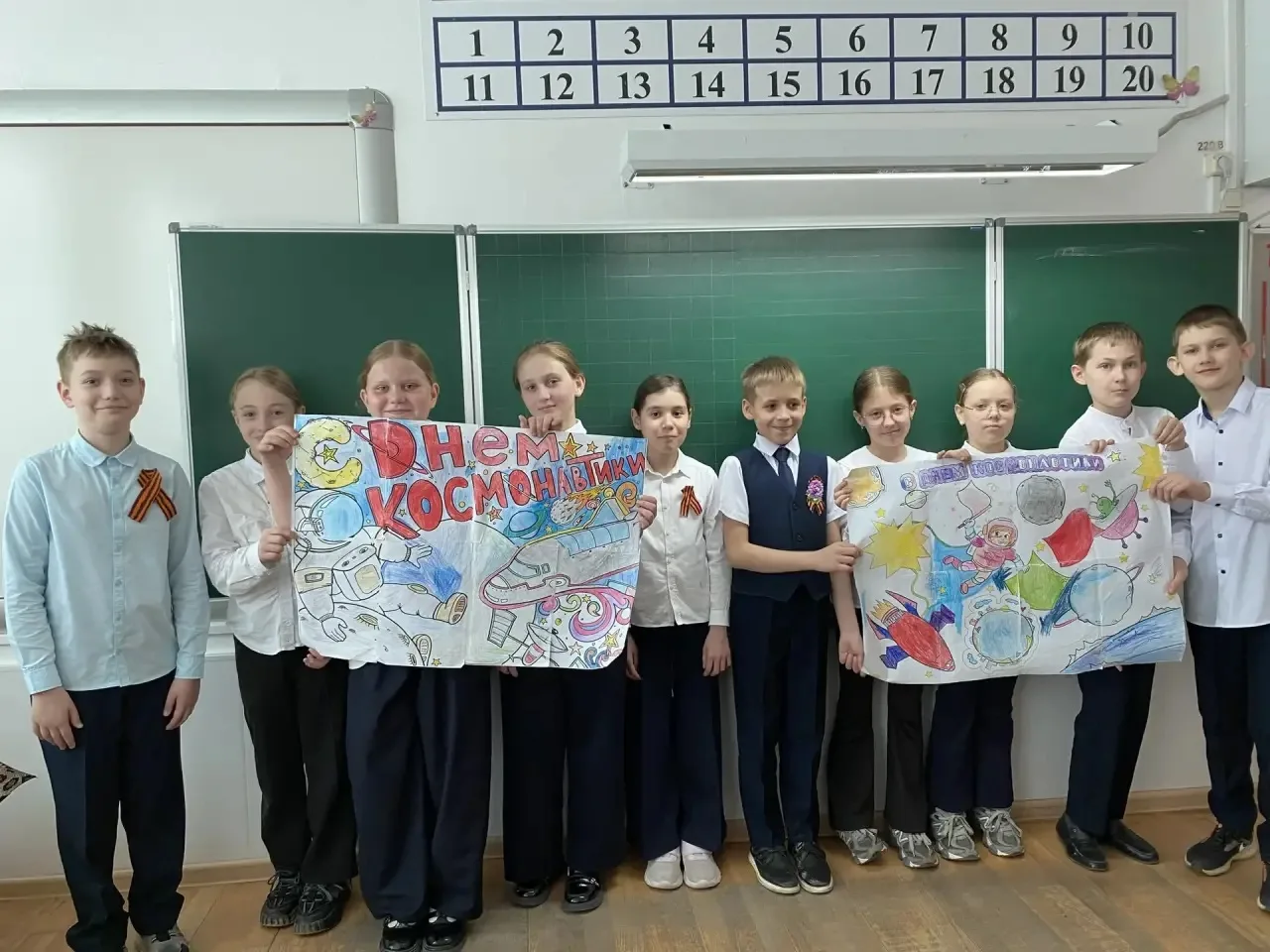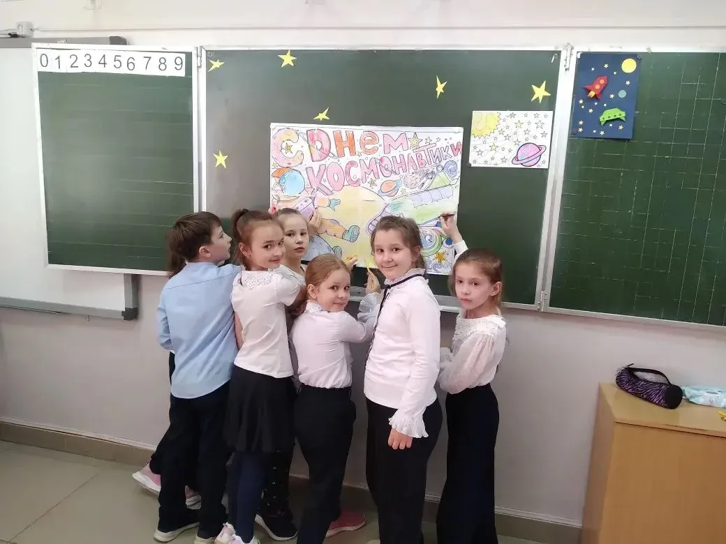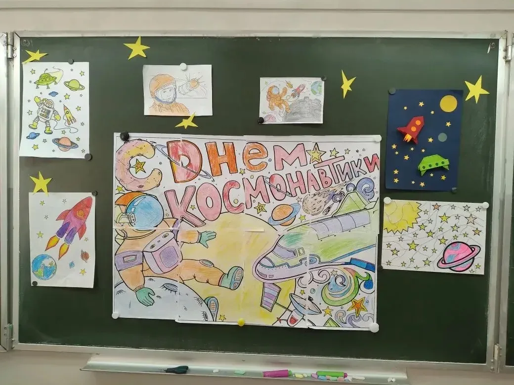 🌏 В классах школы №63 (ул. Анны Аматовой, 6/1) прошли тематические мероприятия, а ребята из 1 класса подготовили целую галерею картин, посвящённую космосу. А школьные звонки были заменены на сообщения дикторов о запуске первого космического корабля с человеком на борту и обращение Юрия Гагарина со стартовой площадки Байконура.