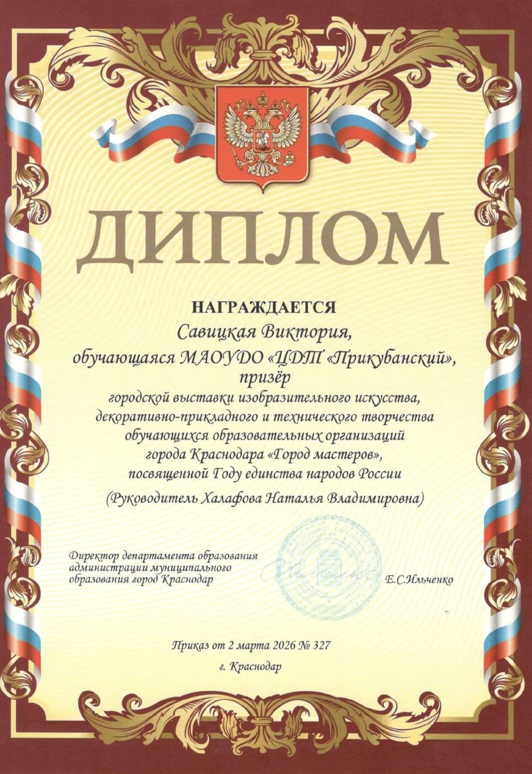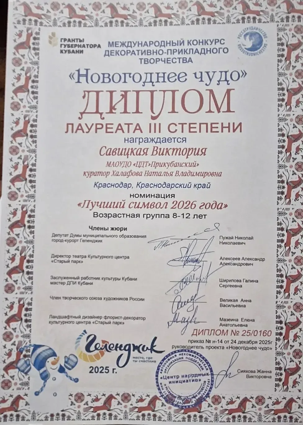 ⭐️Савицкая Виктория ученица 5 «Б» класса приняла участие в международном конкурсе декоративно прикладного творчества.